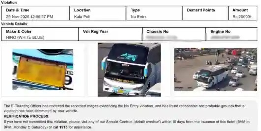 The e-challan system is part of a broader effort by Karachi traffic authorities to regulate intercity travel and maintain road safety in the city.