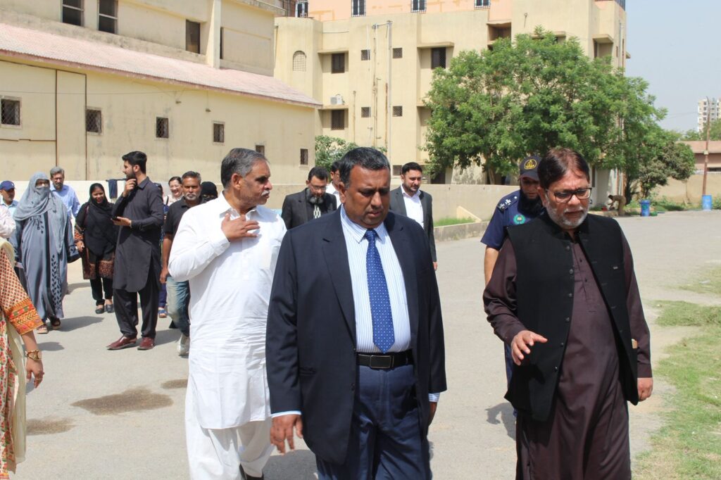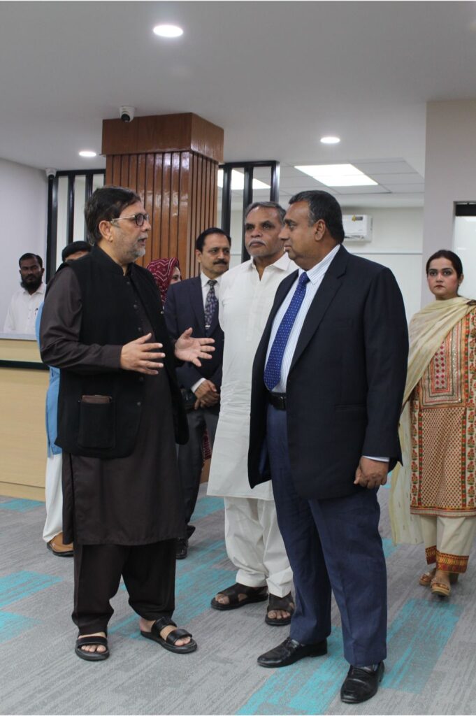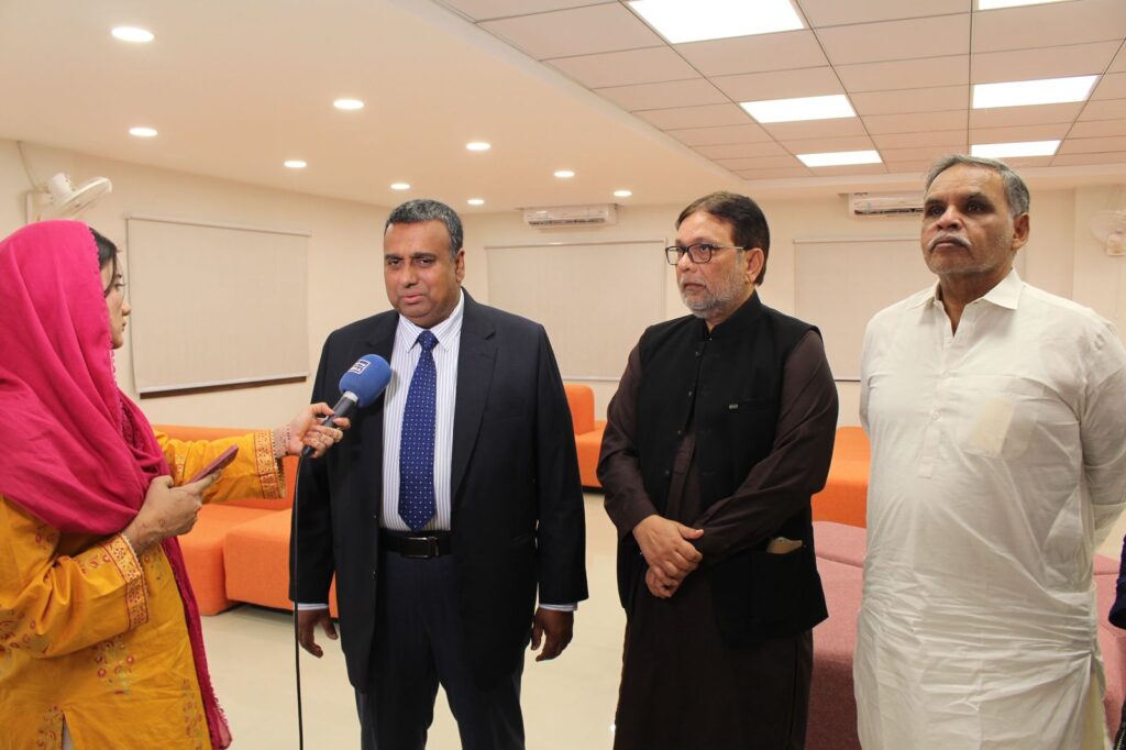 Mr. Iqbal Hussain toured various university facilities, including the modern library, girls’ common room, girls’ hostel, auditorium, and scientific laboratories.
