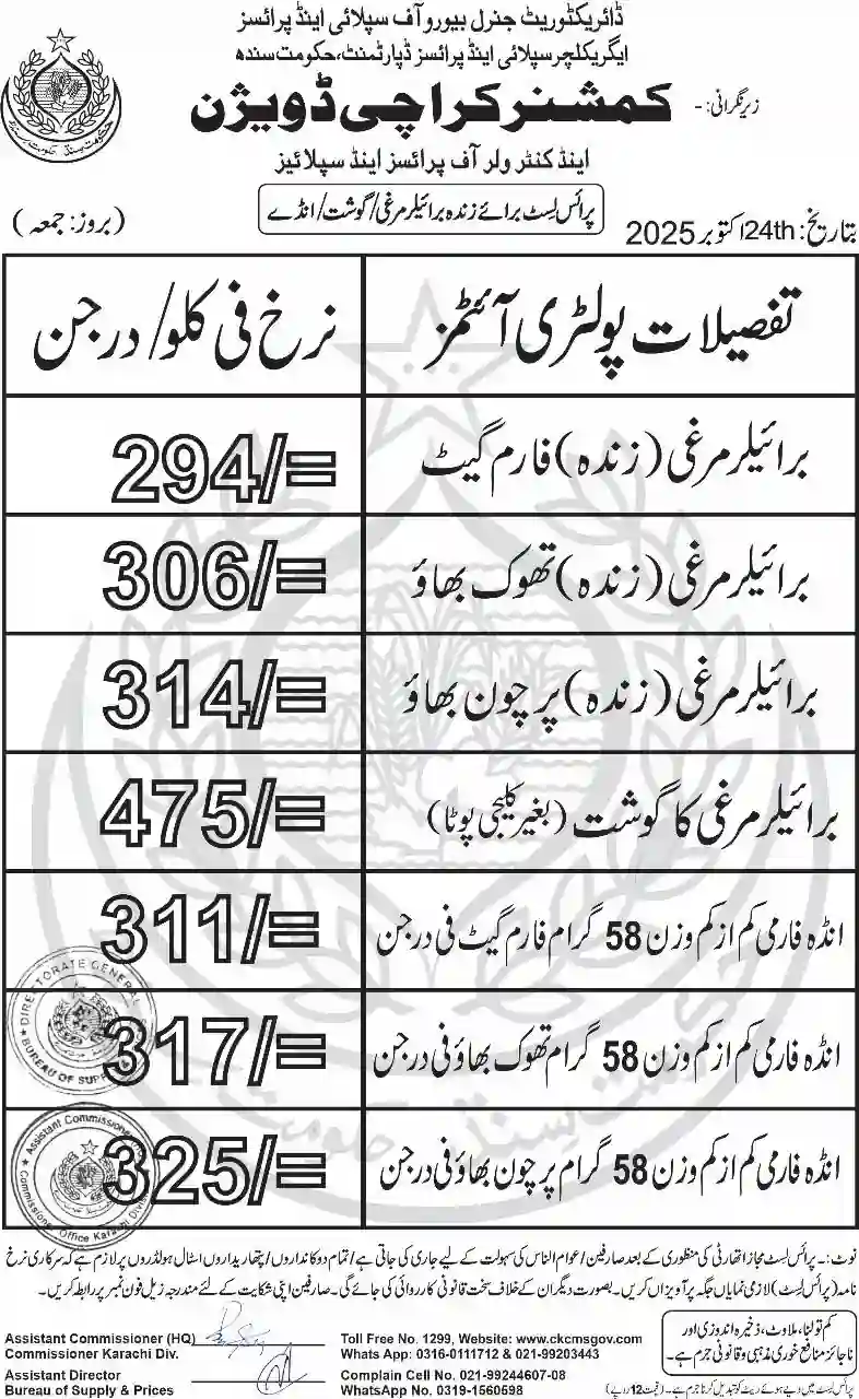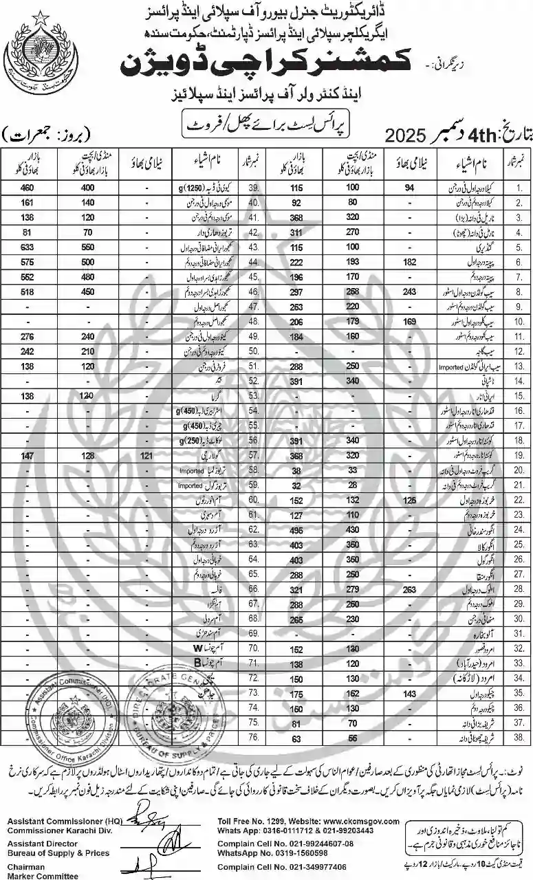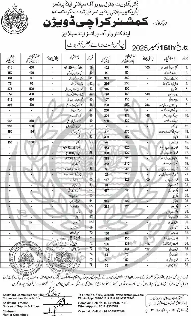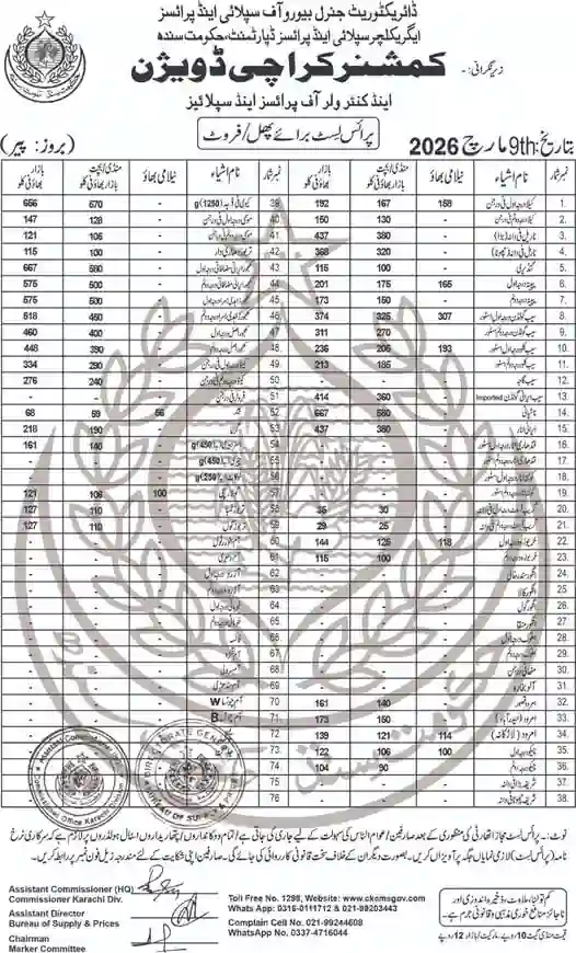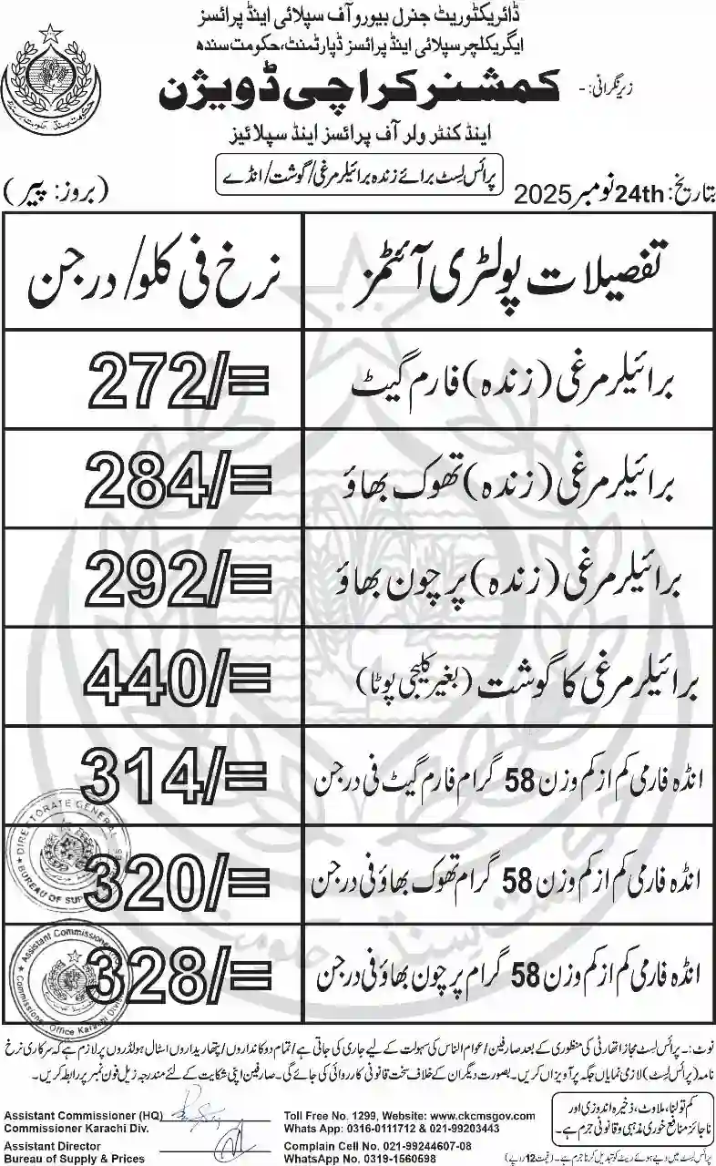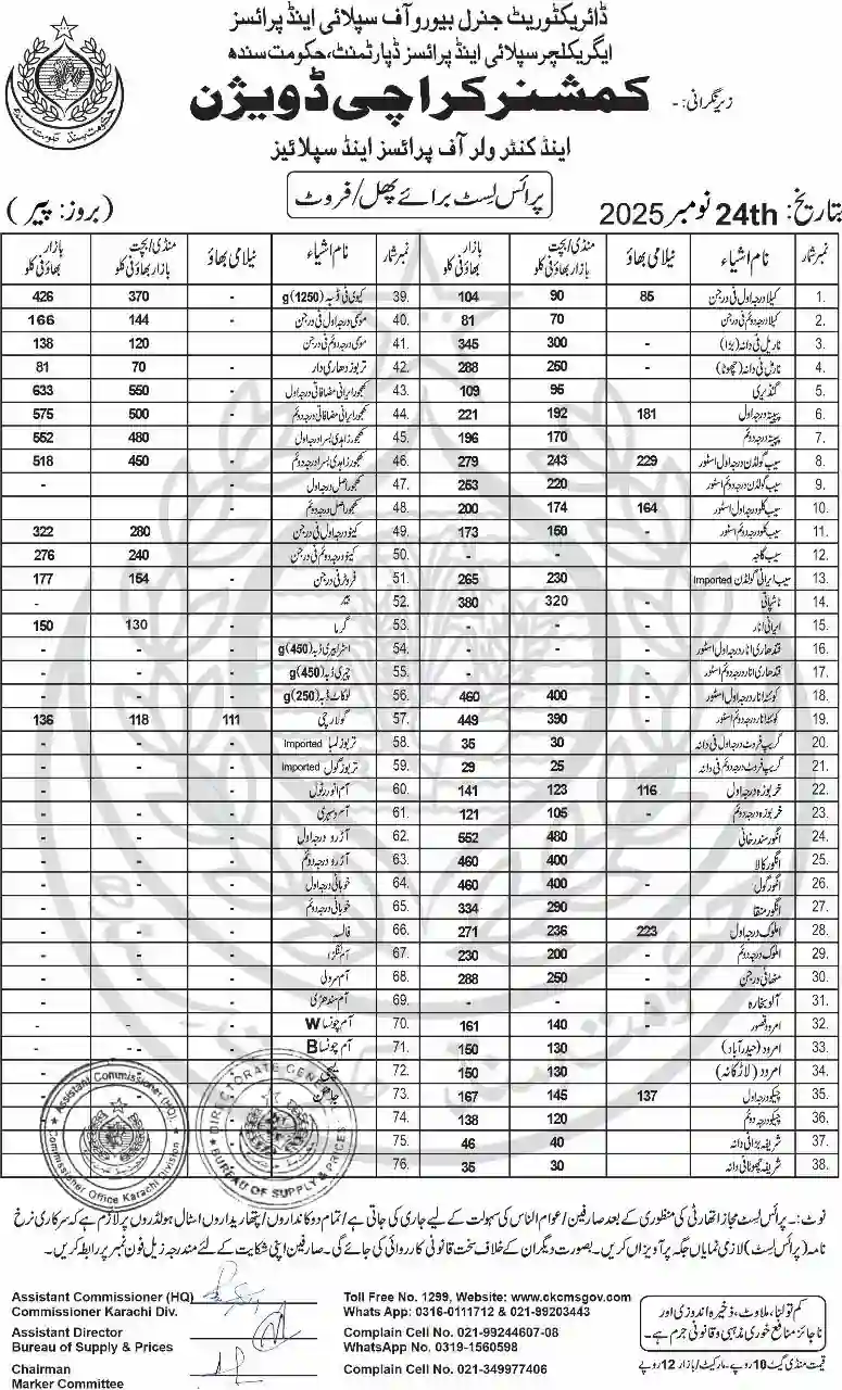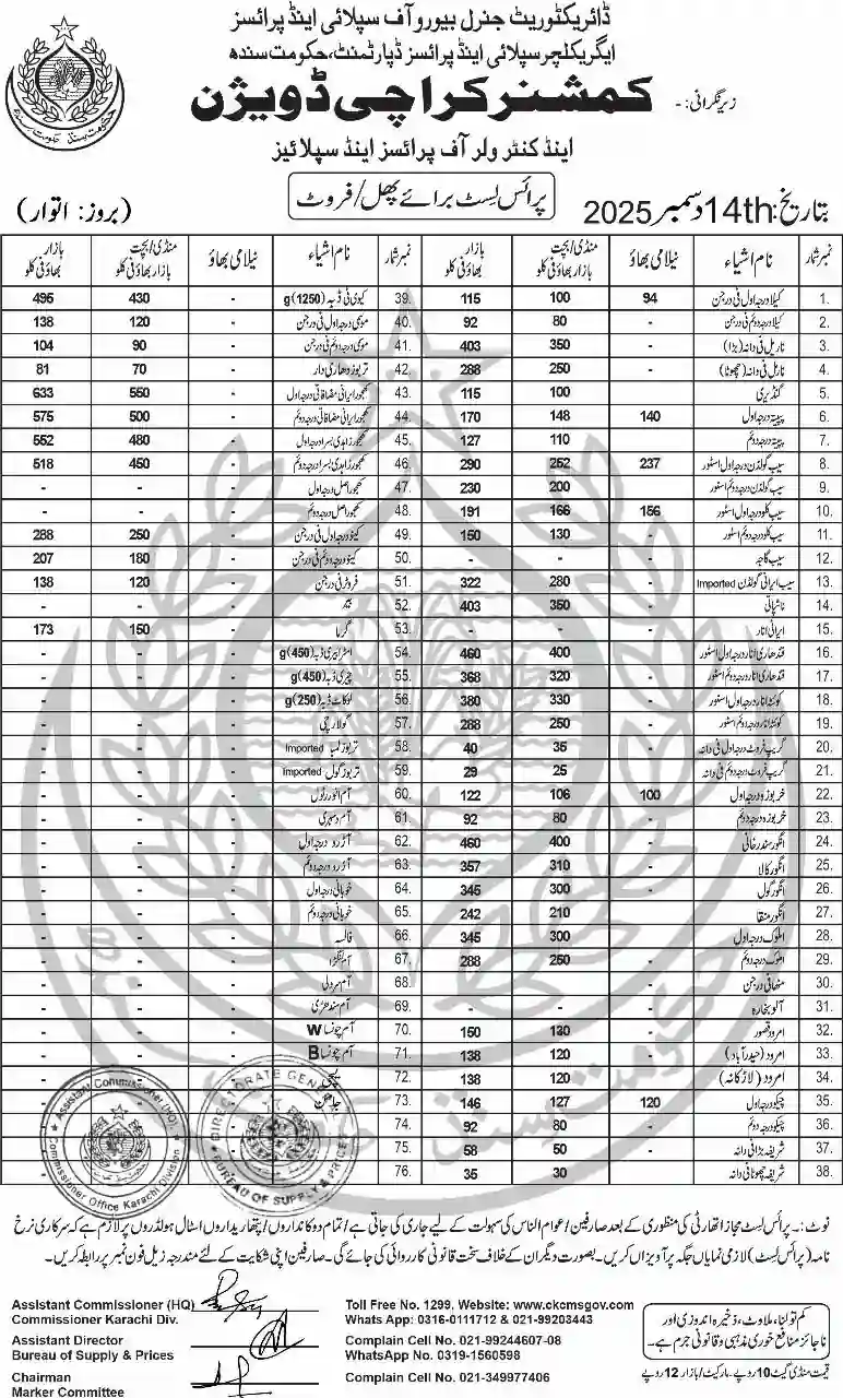 | Karachi Naan Chapati Price List | April 18, 2025 | View/Download |