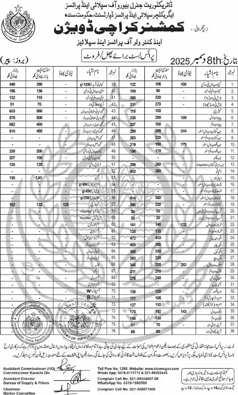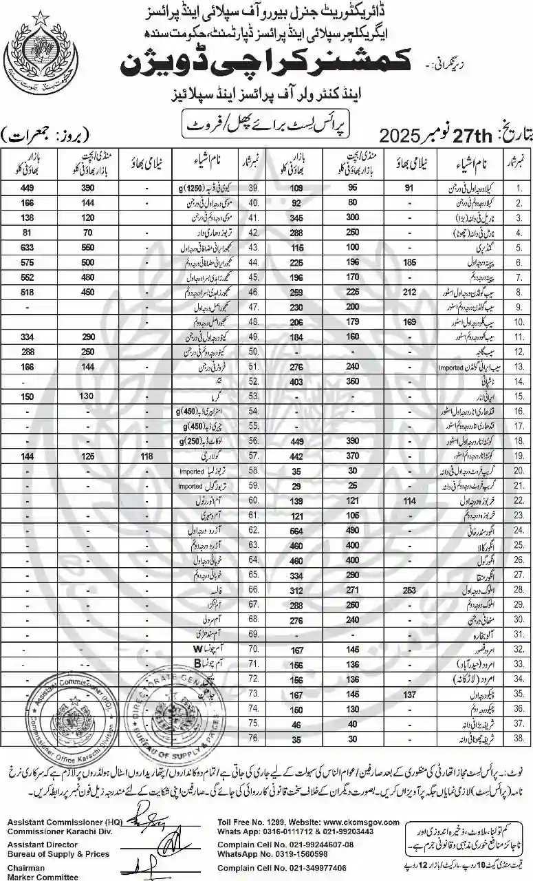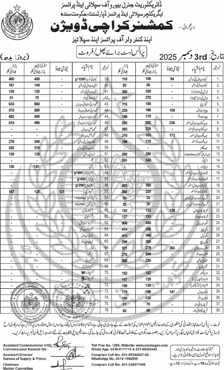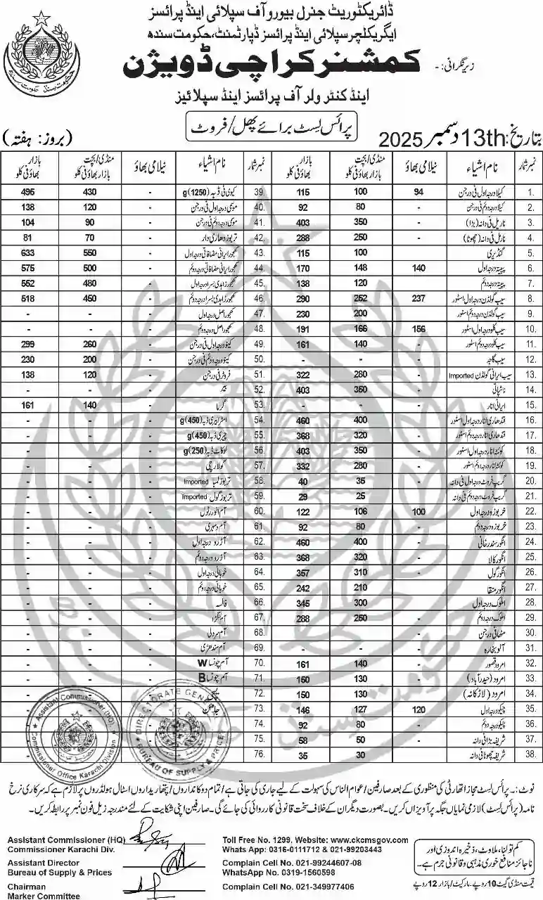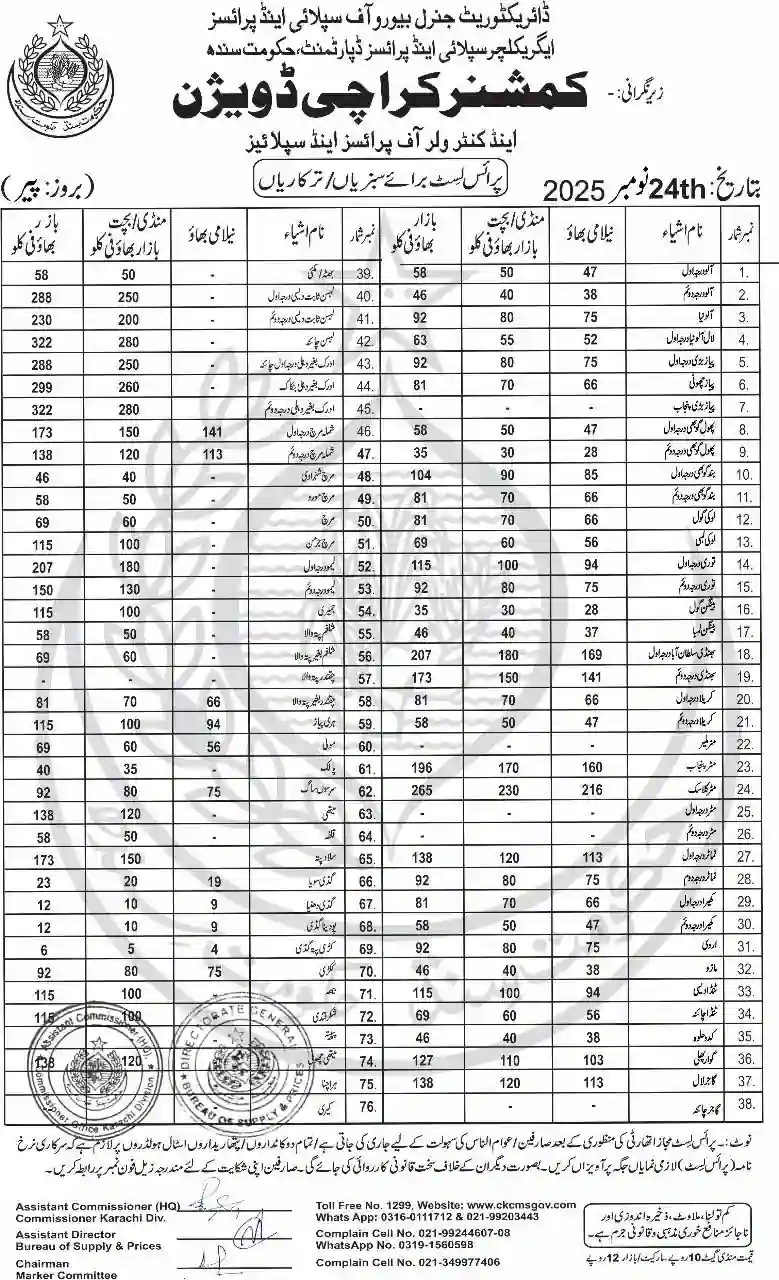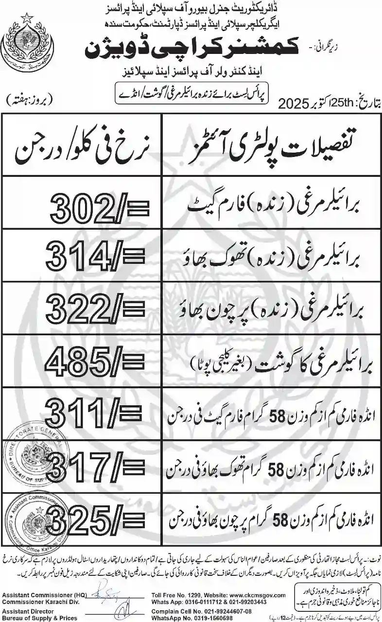 | Karachi Naan Chapati Price List | April 18, 2025 | View/Download |