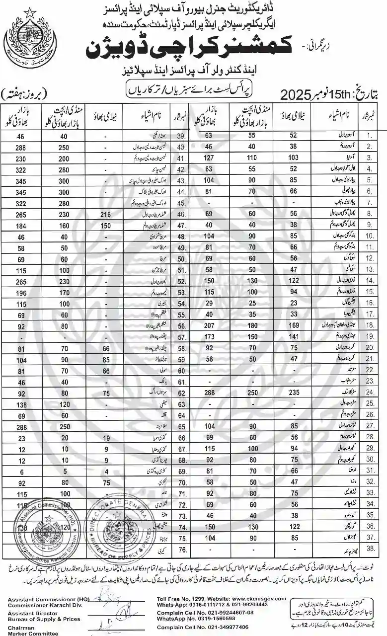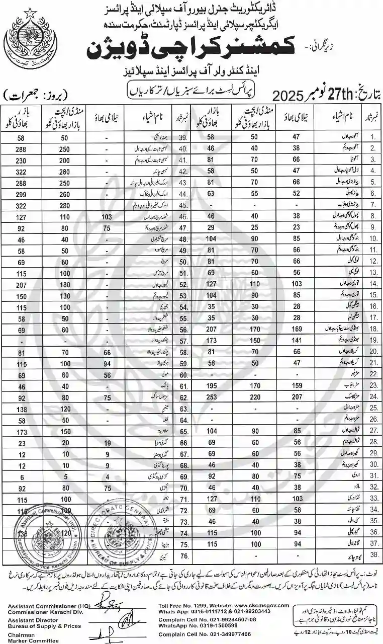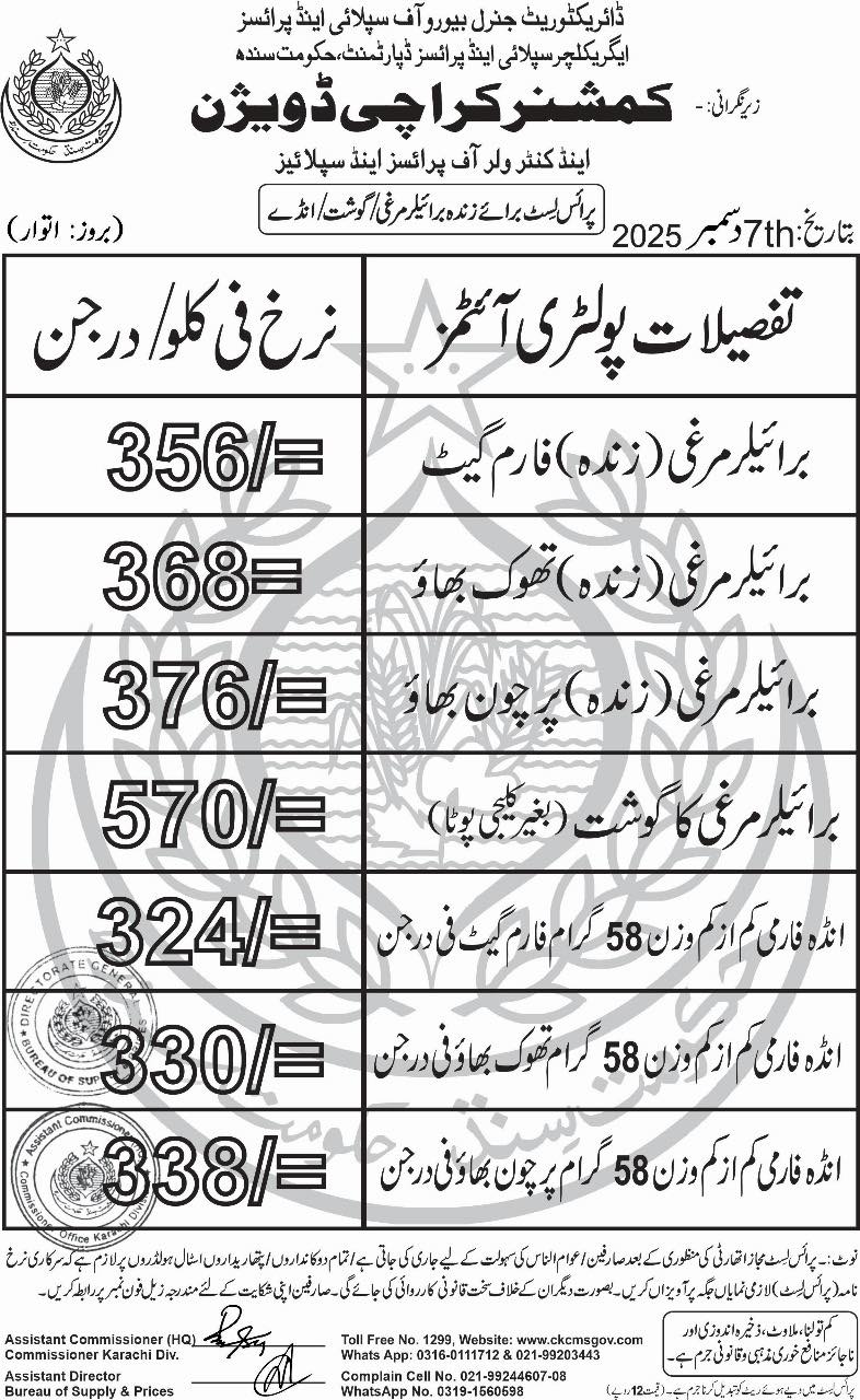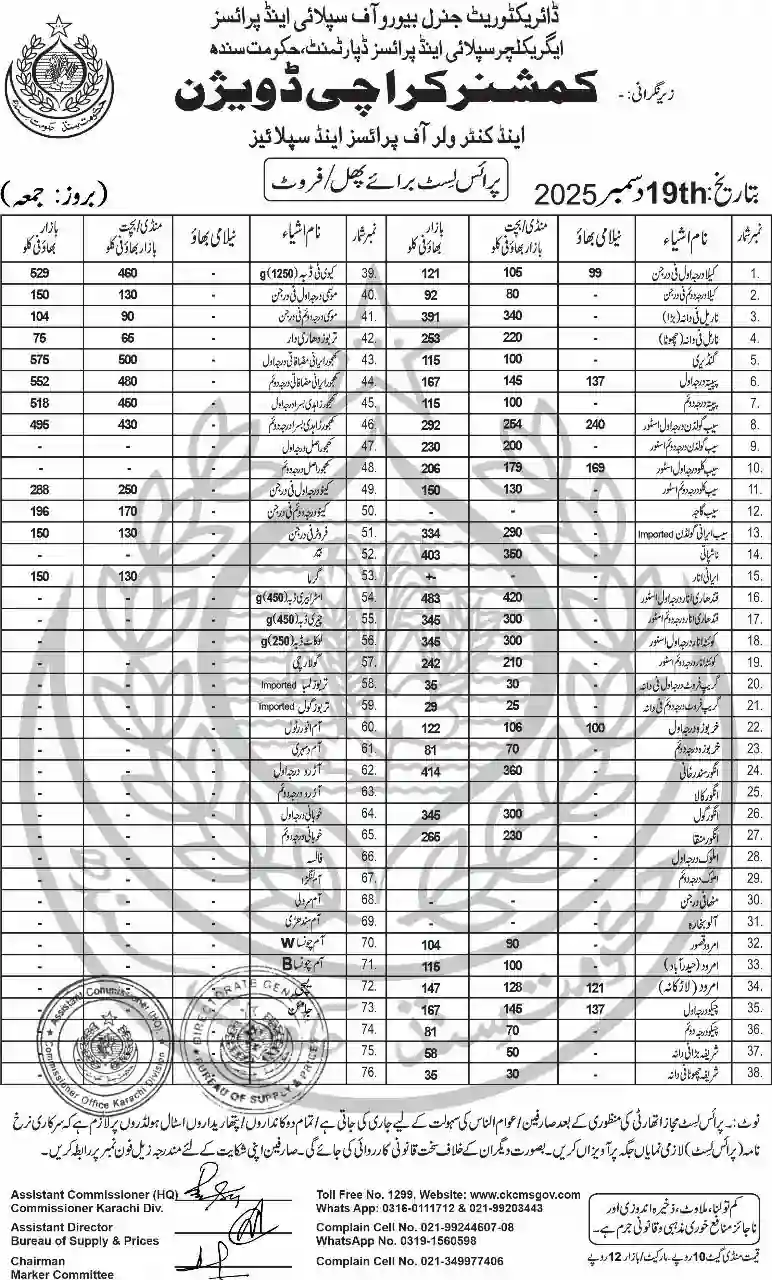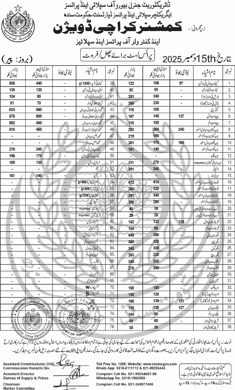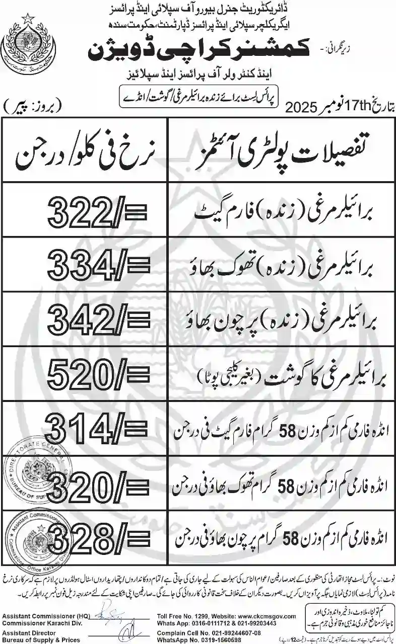 | Karachi Naan Chapati Price List | April 18, 2025 | View/Download |