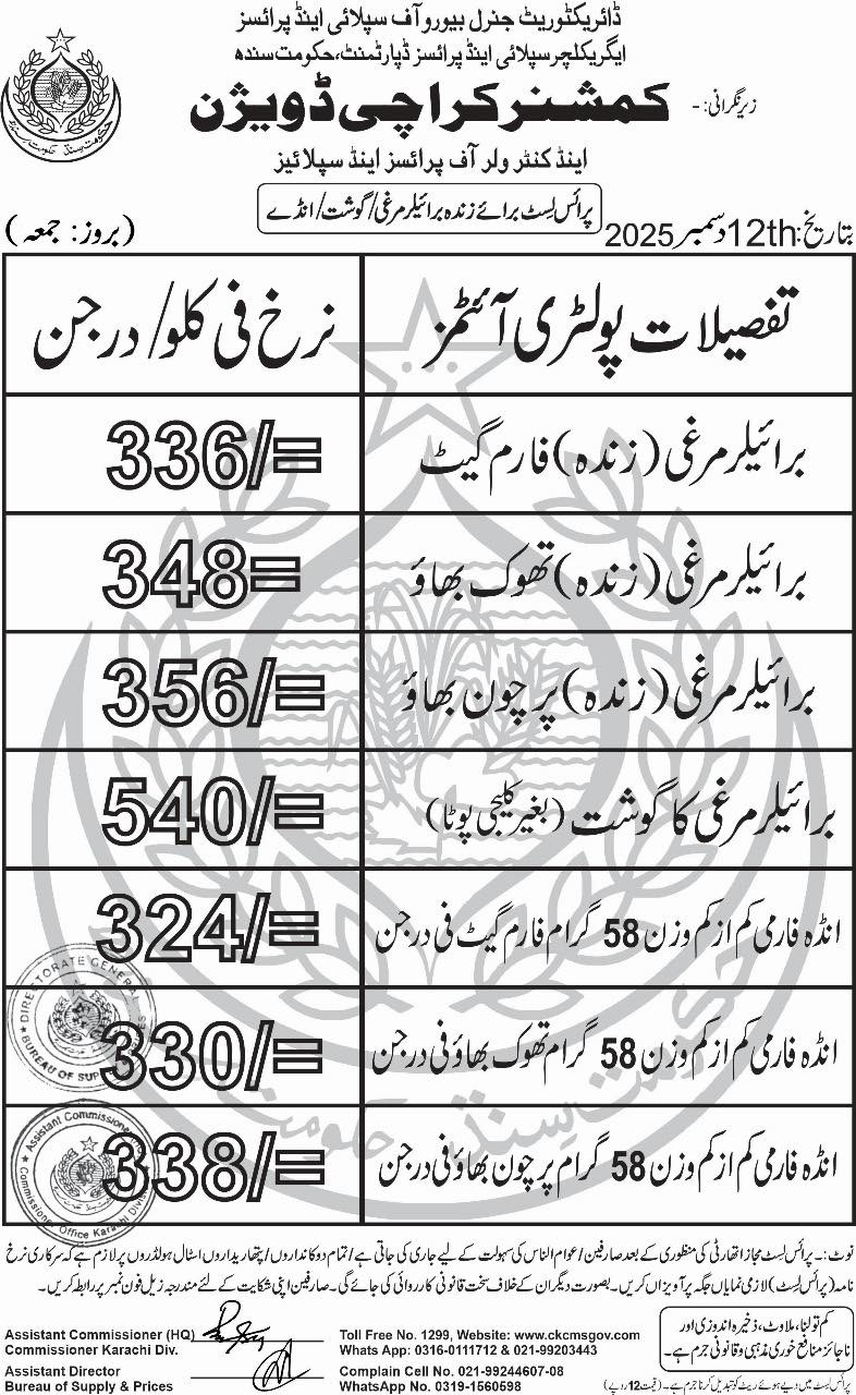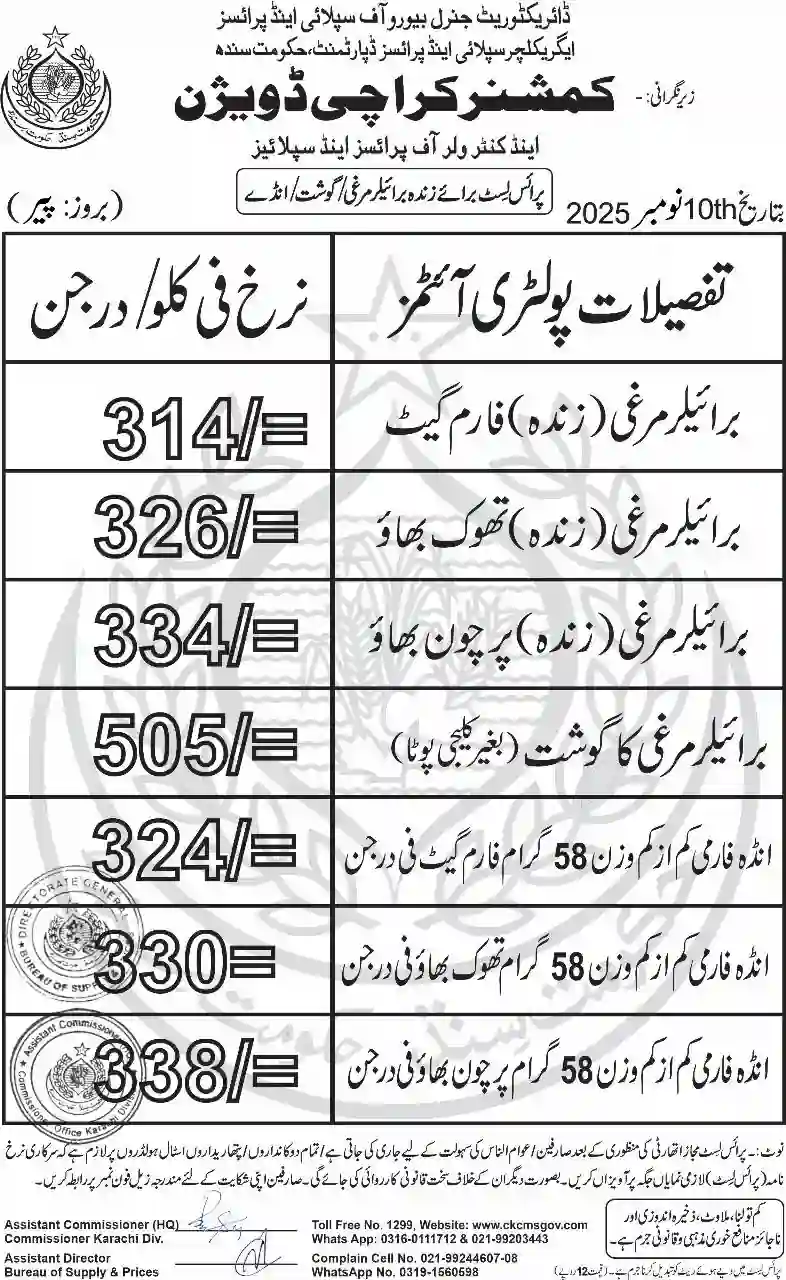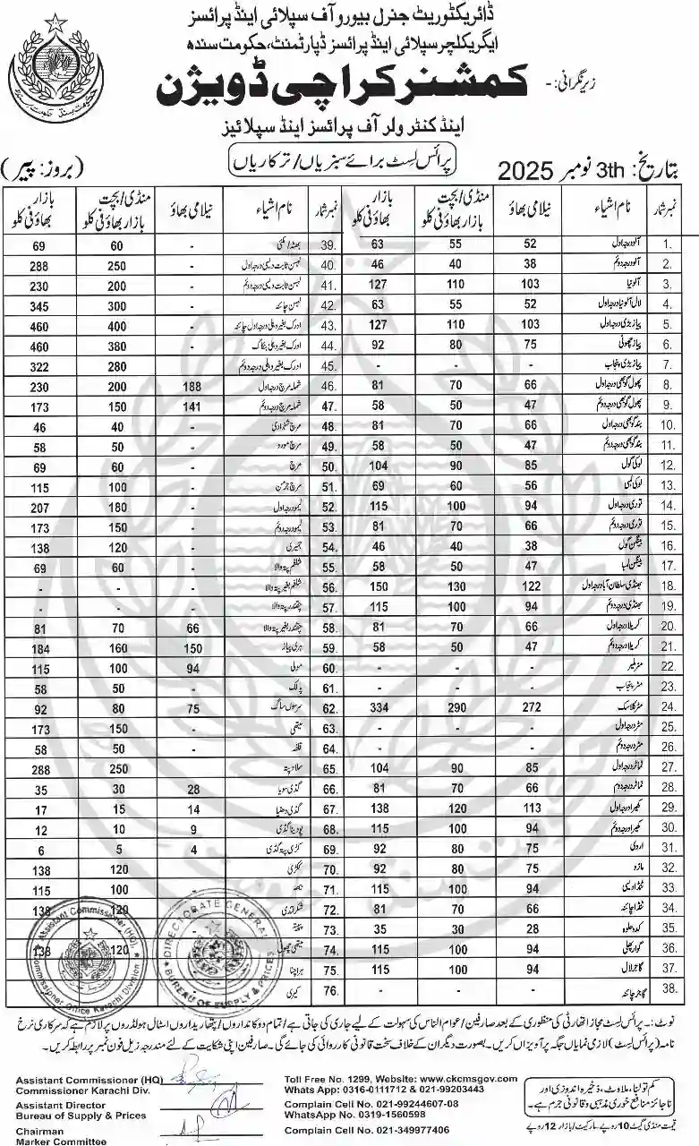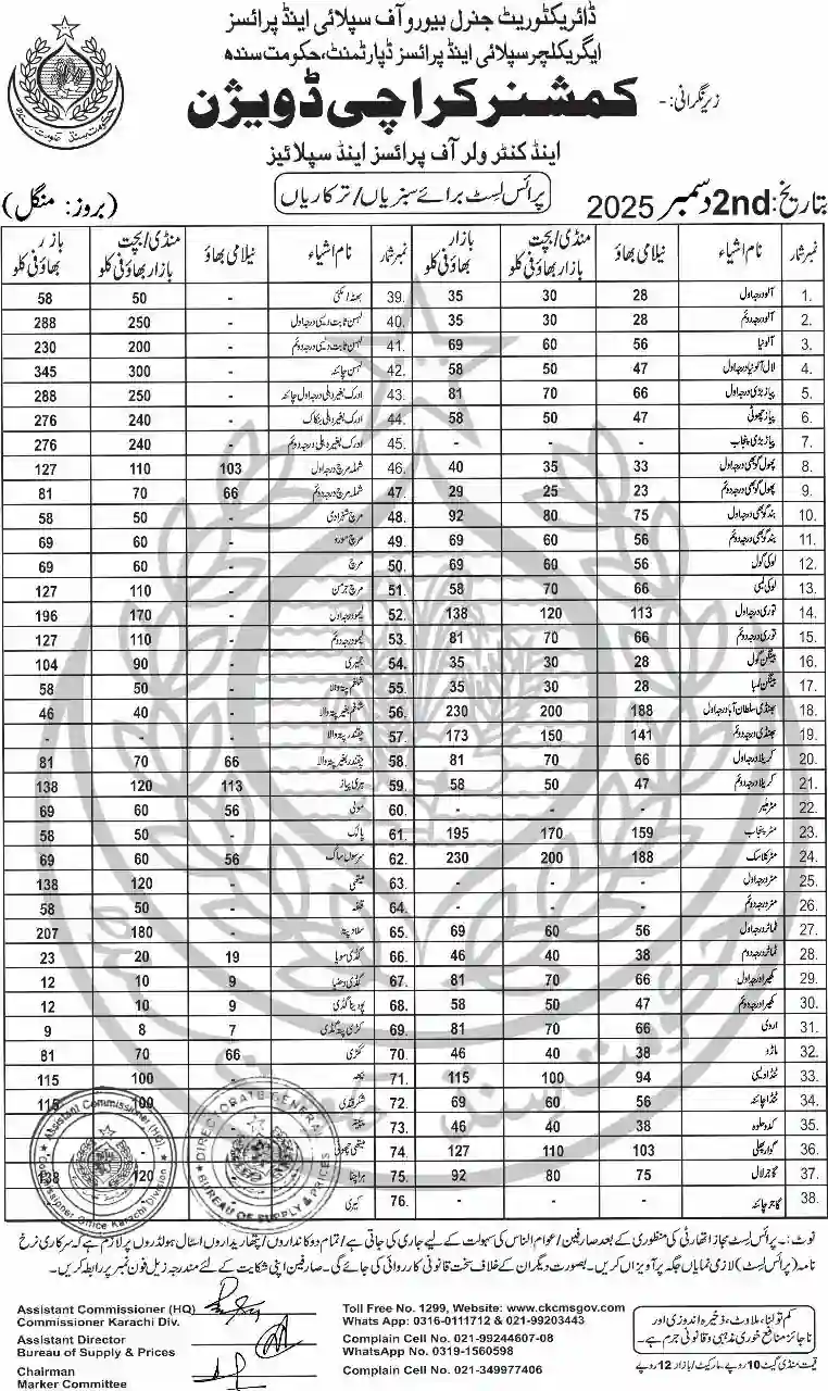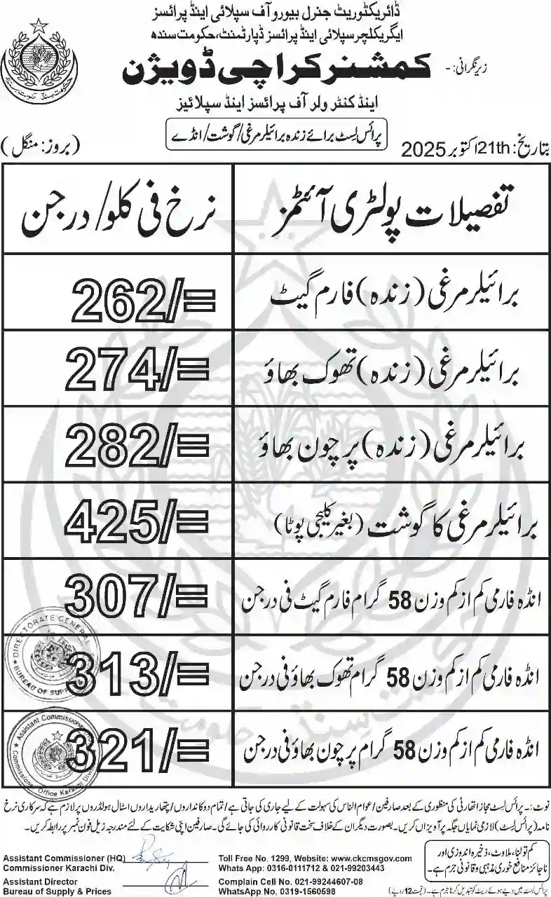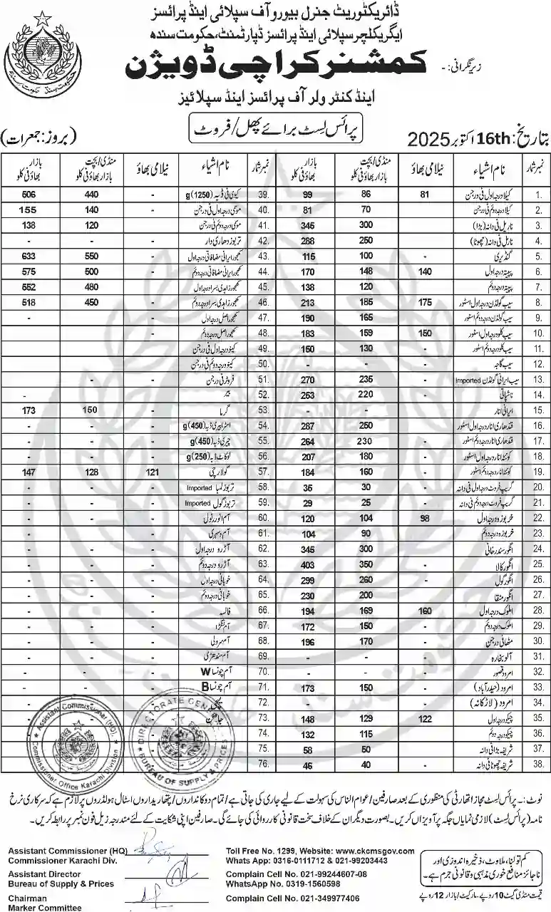 | Karachi Naan Chapati Price List | April 18, 2025 | View/Download |