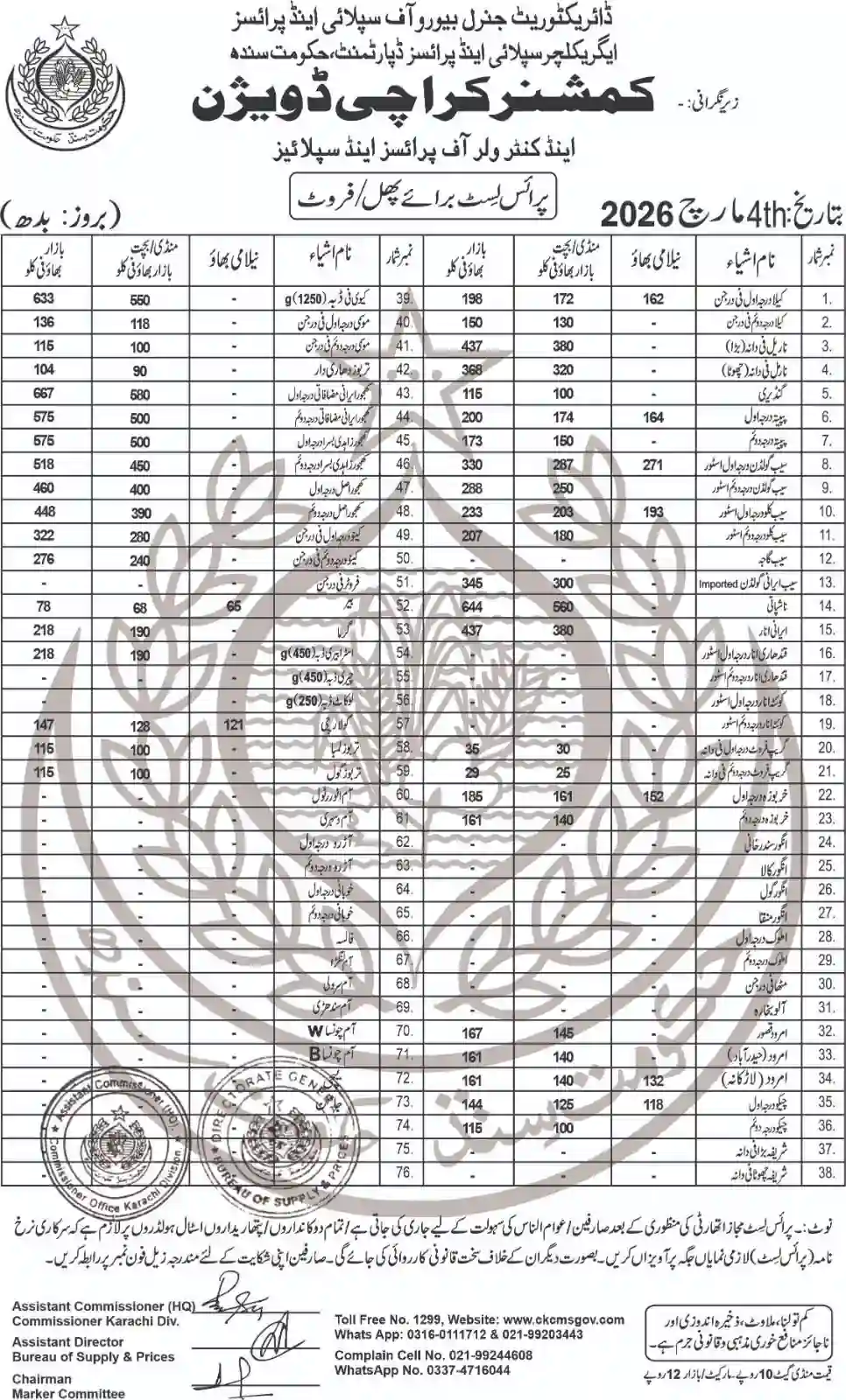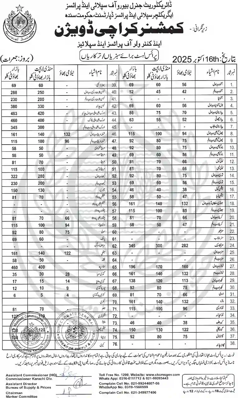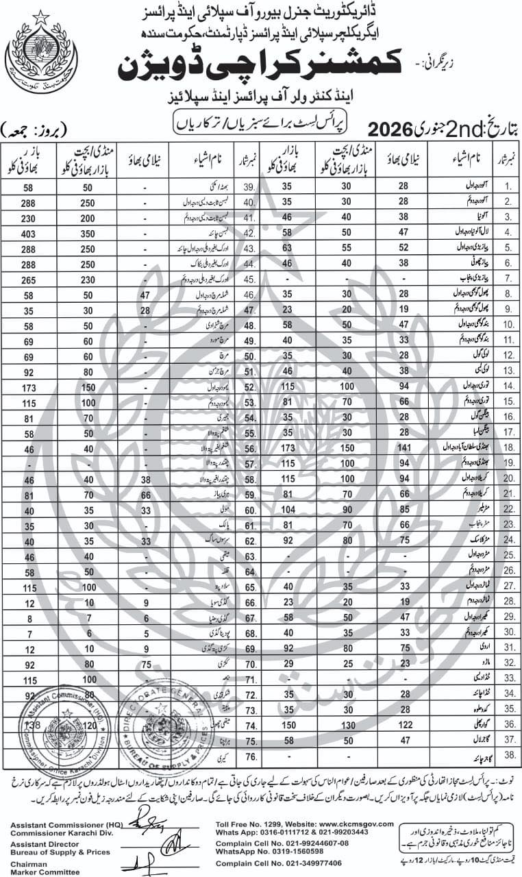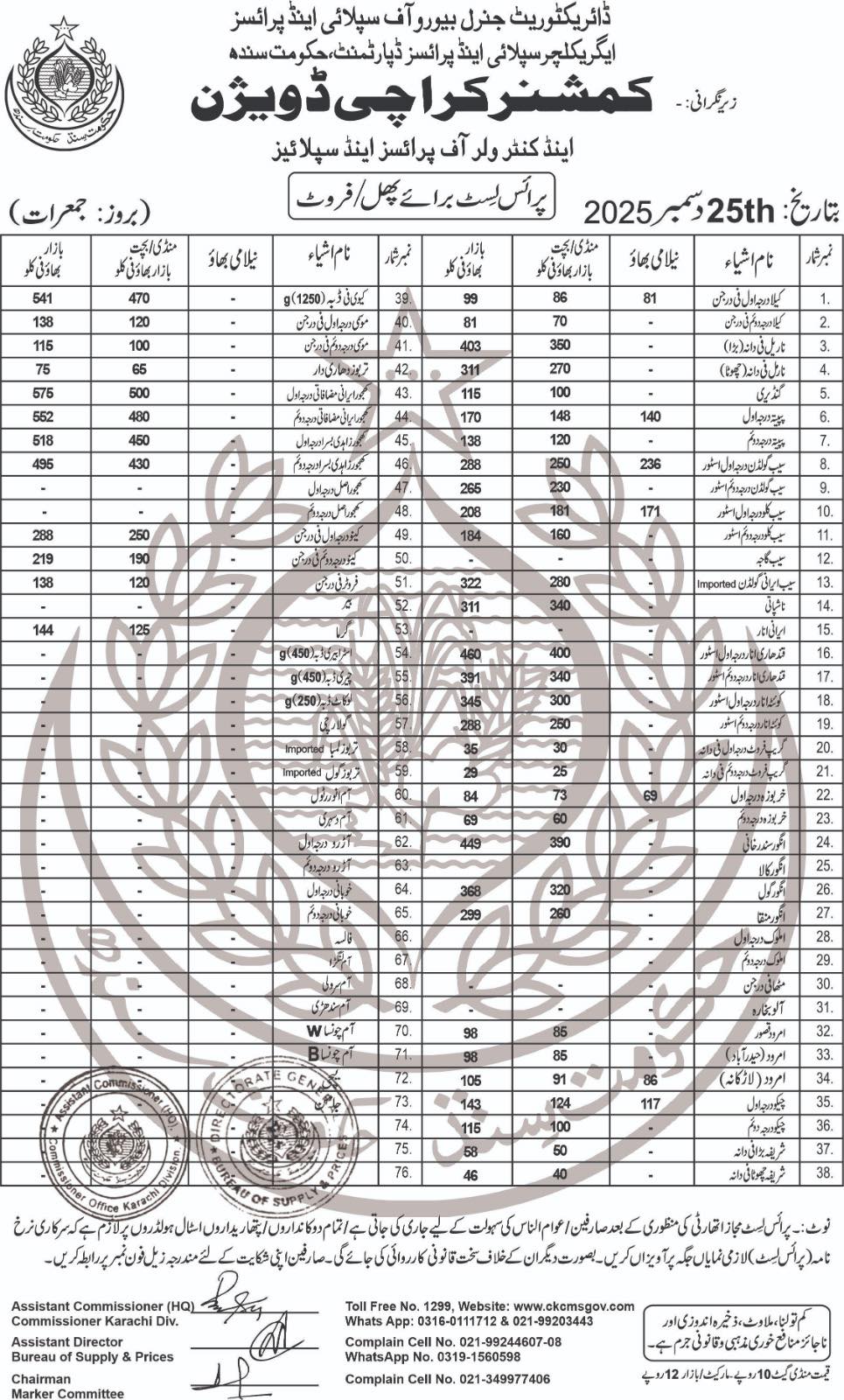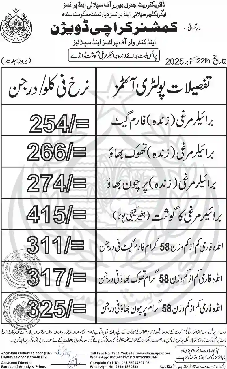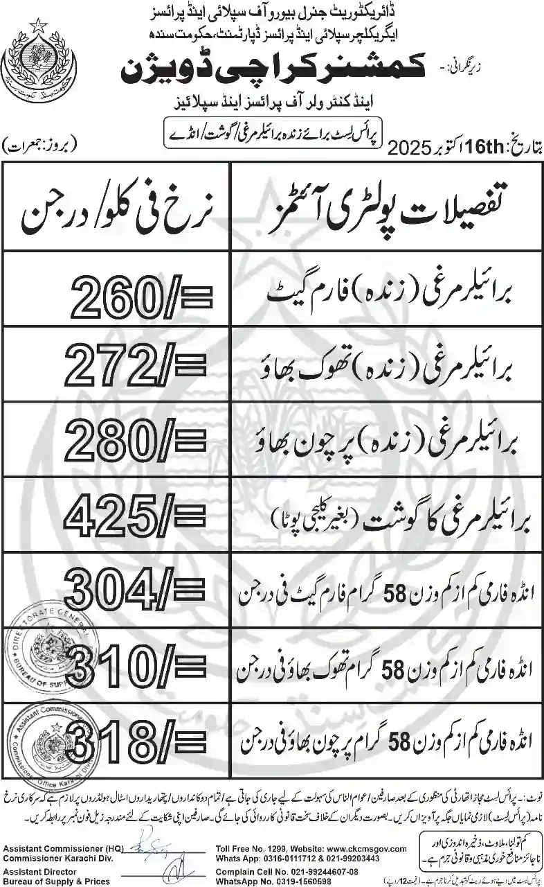 | Karachi Naan Chapati Price List | April 18, 2025 | View/Download |