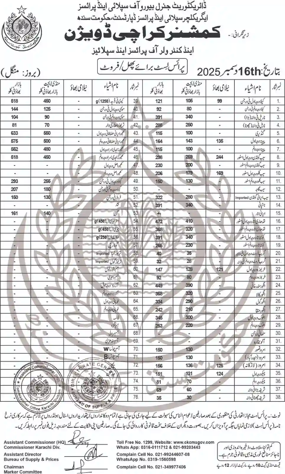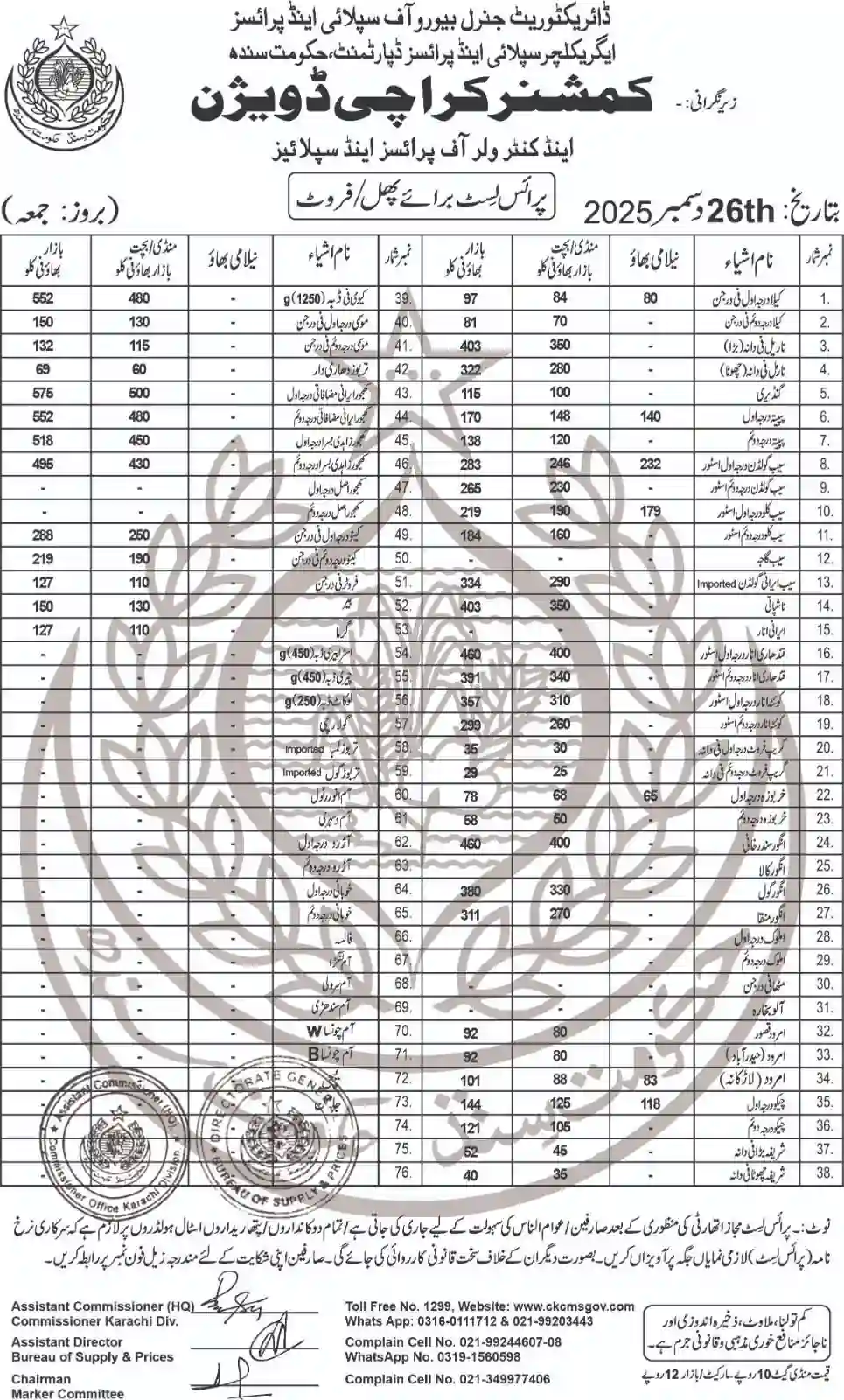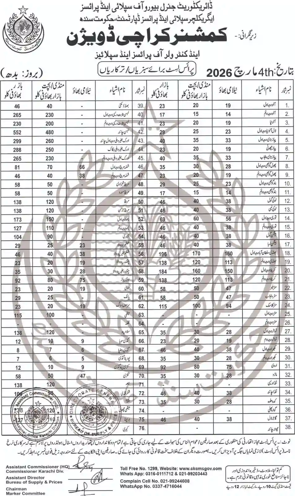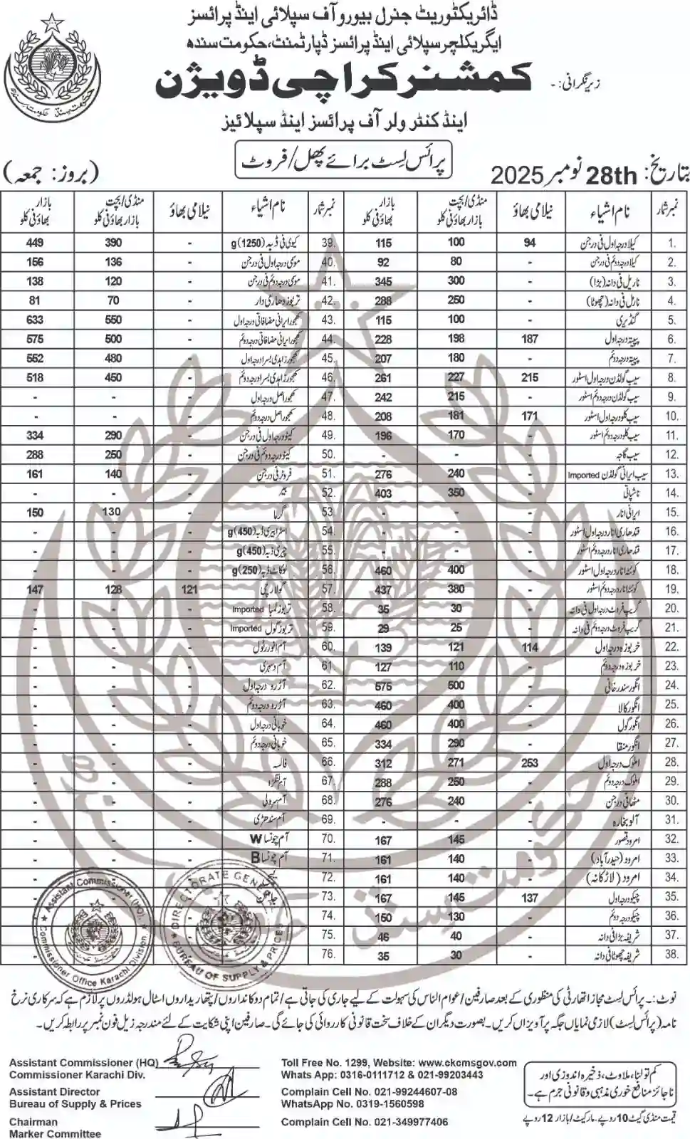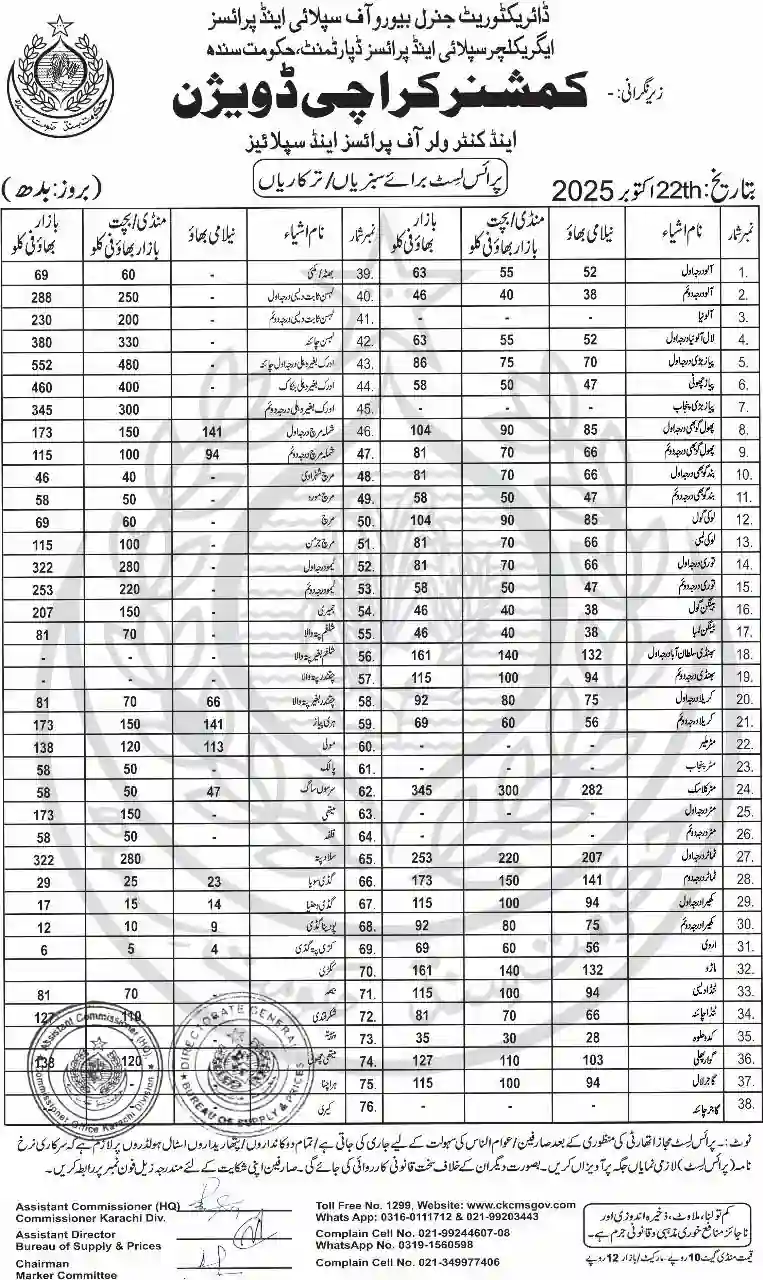 | Karachi Naan Chapati Price List | April 18, 2025 | View/Download |