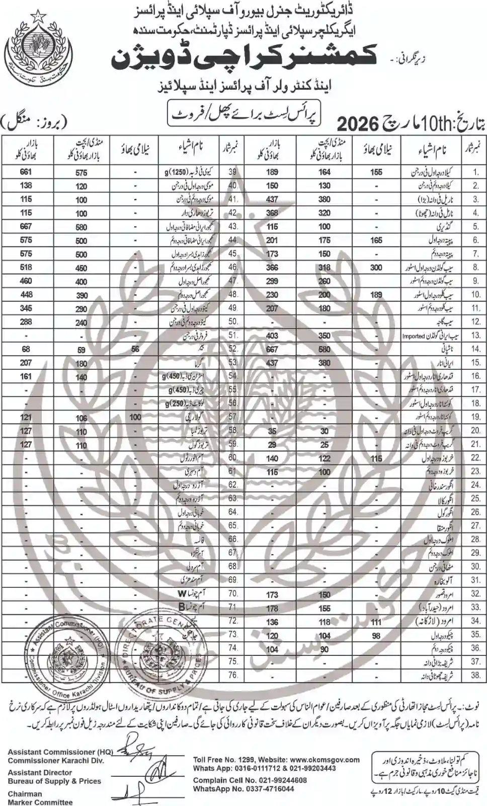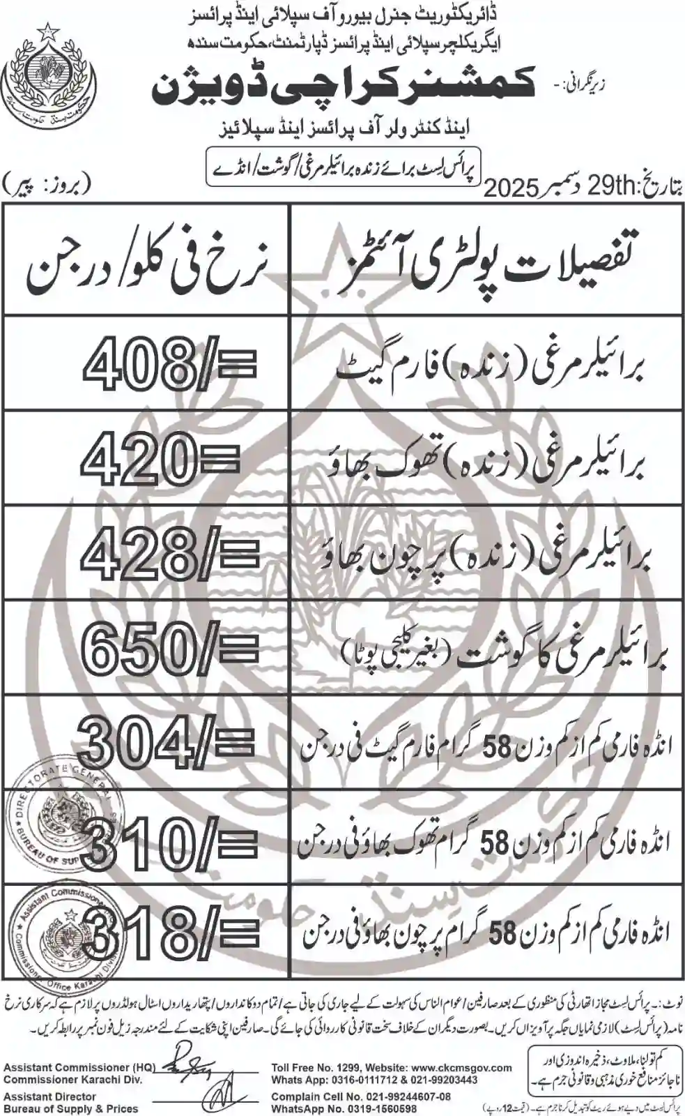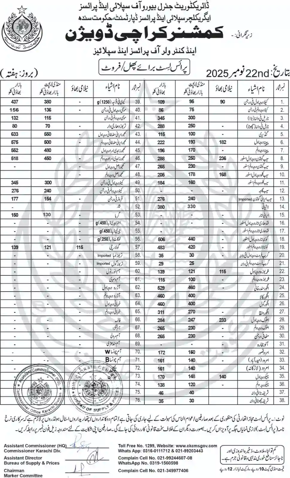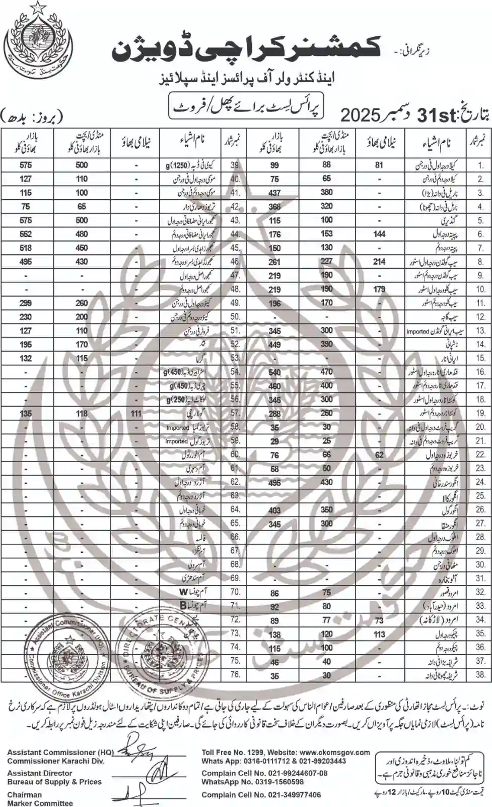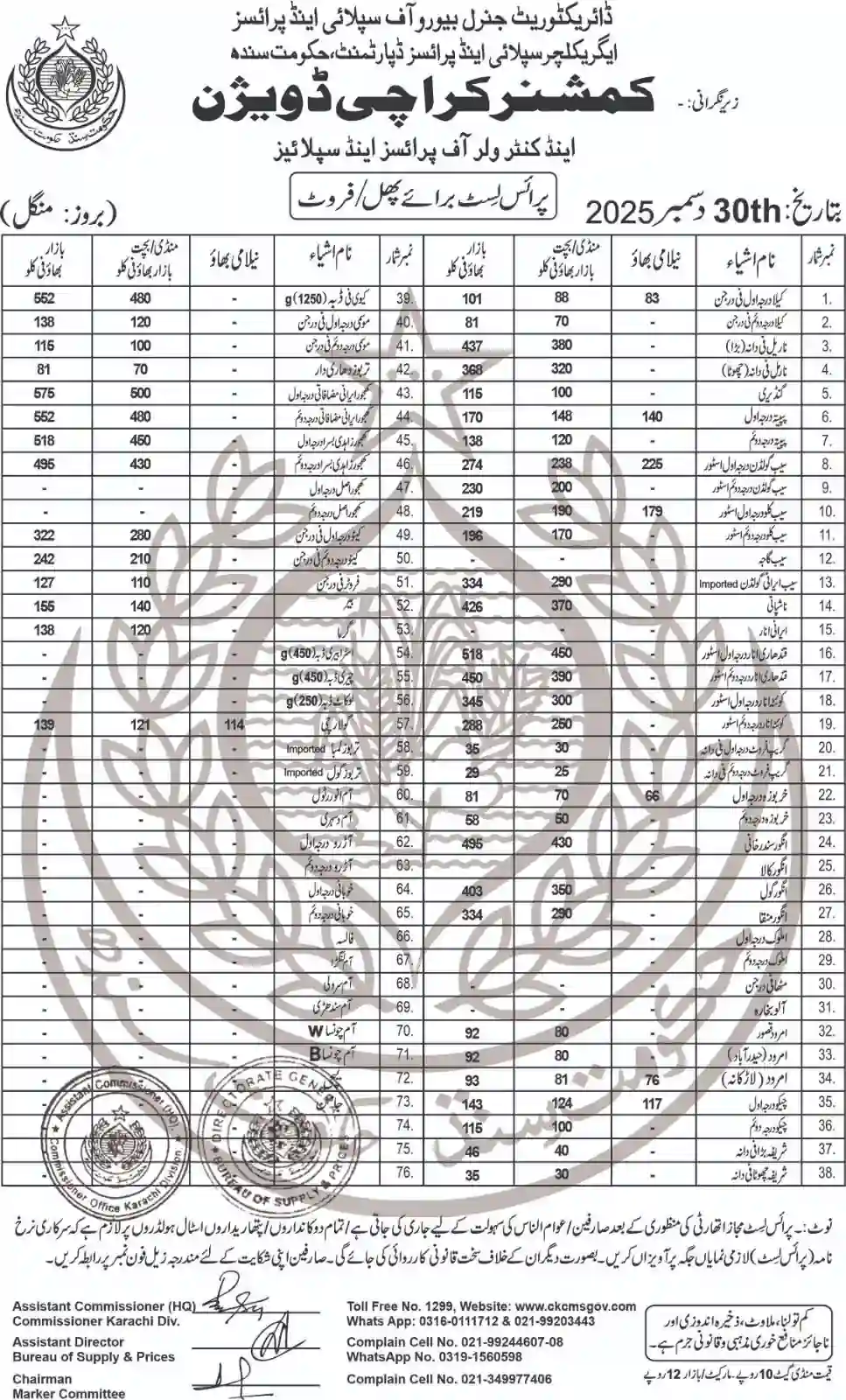 | Karachi Naan Chapati Price List | April 18, 2025 | View/Download |