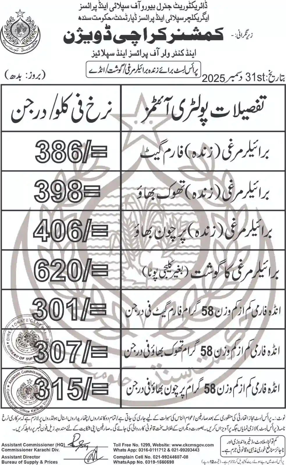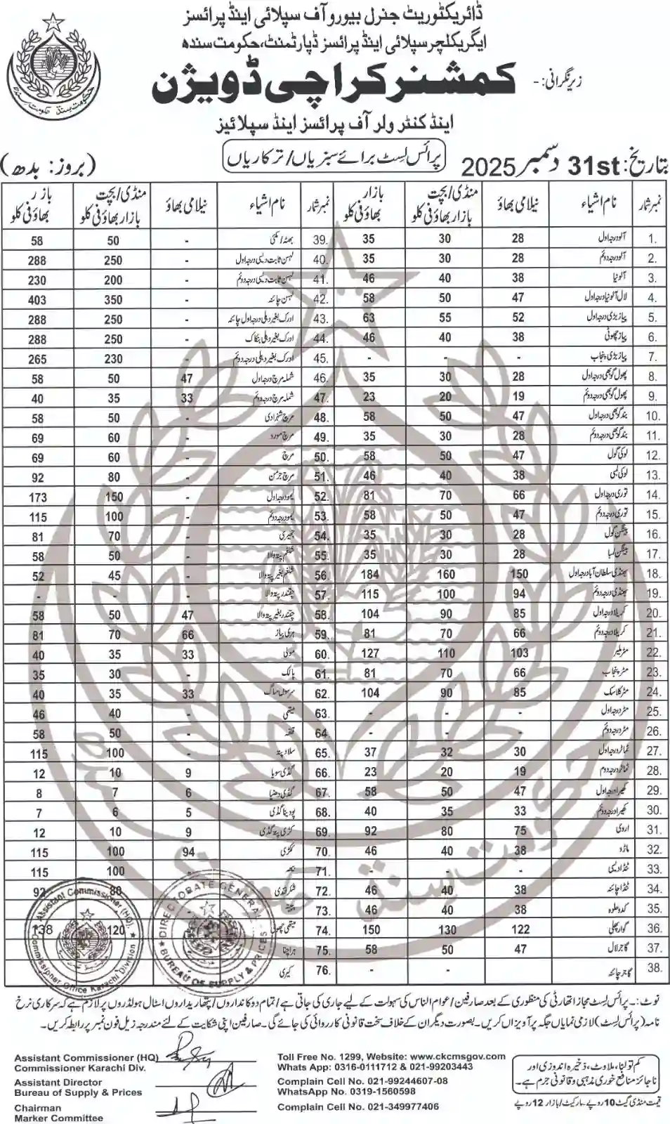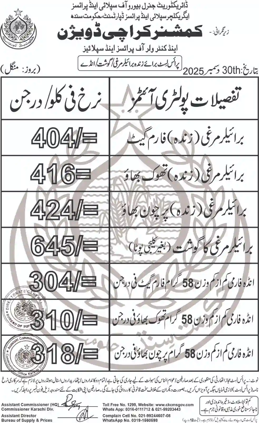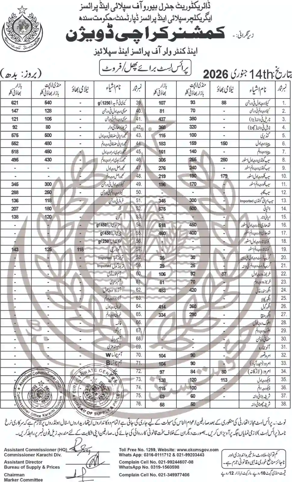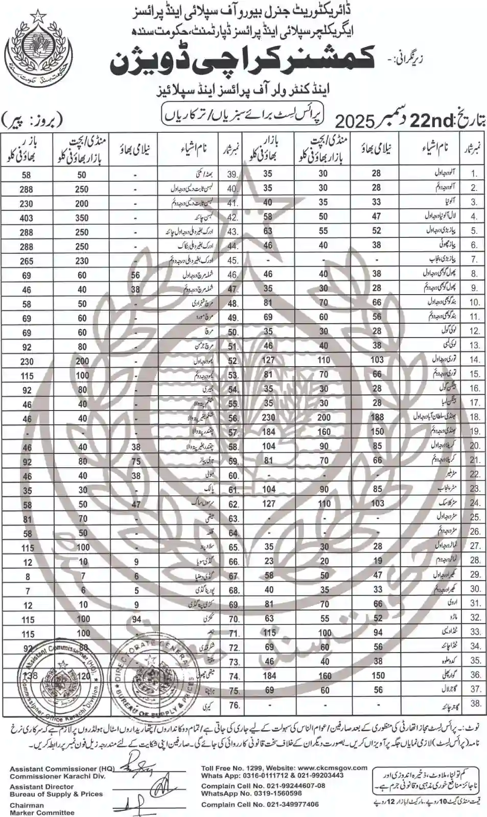 | Karachi Naan Chapati Price List | April 18, 2025 | View/Download |