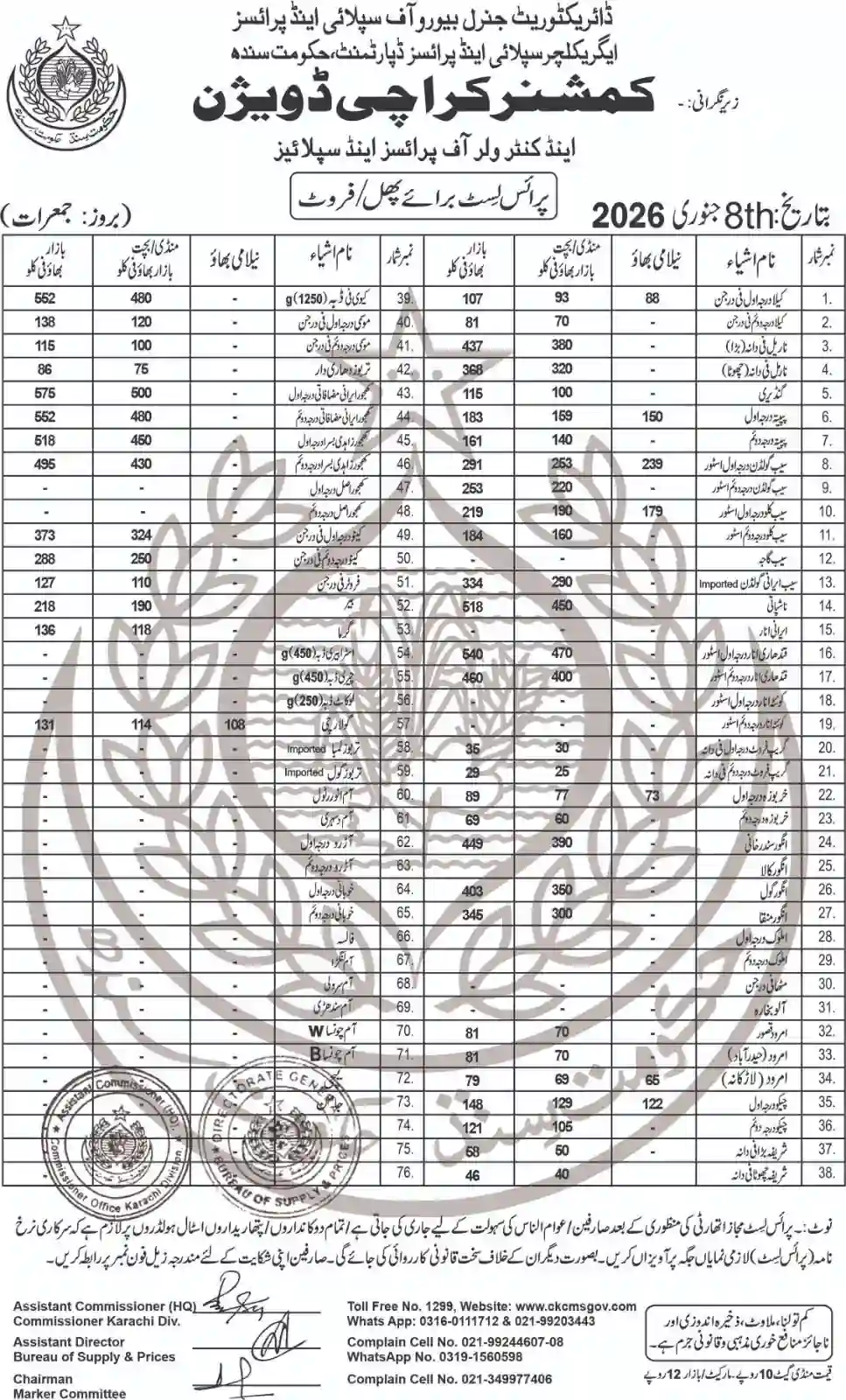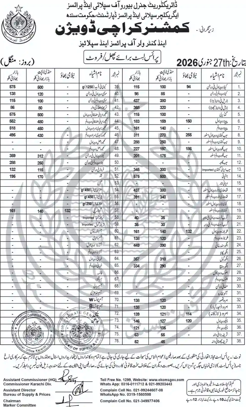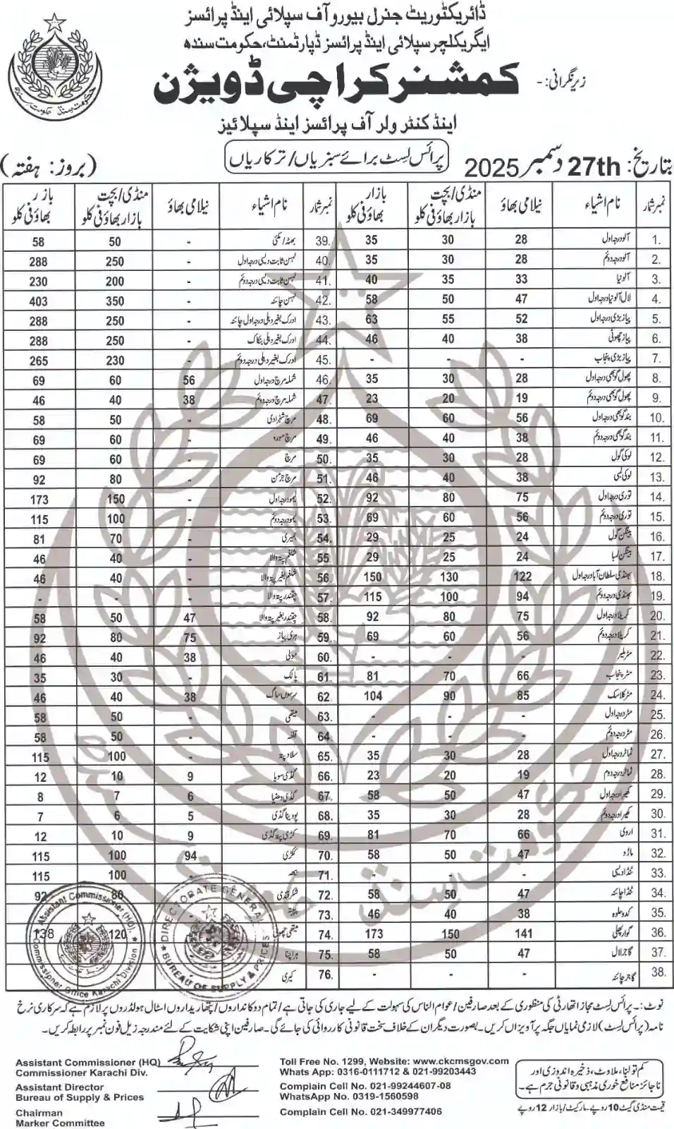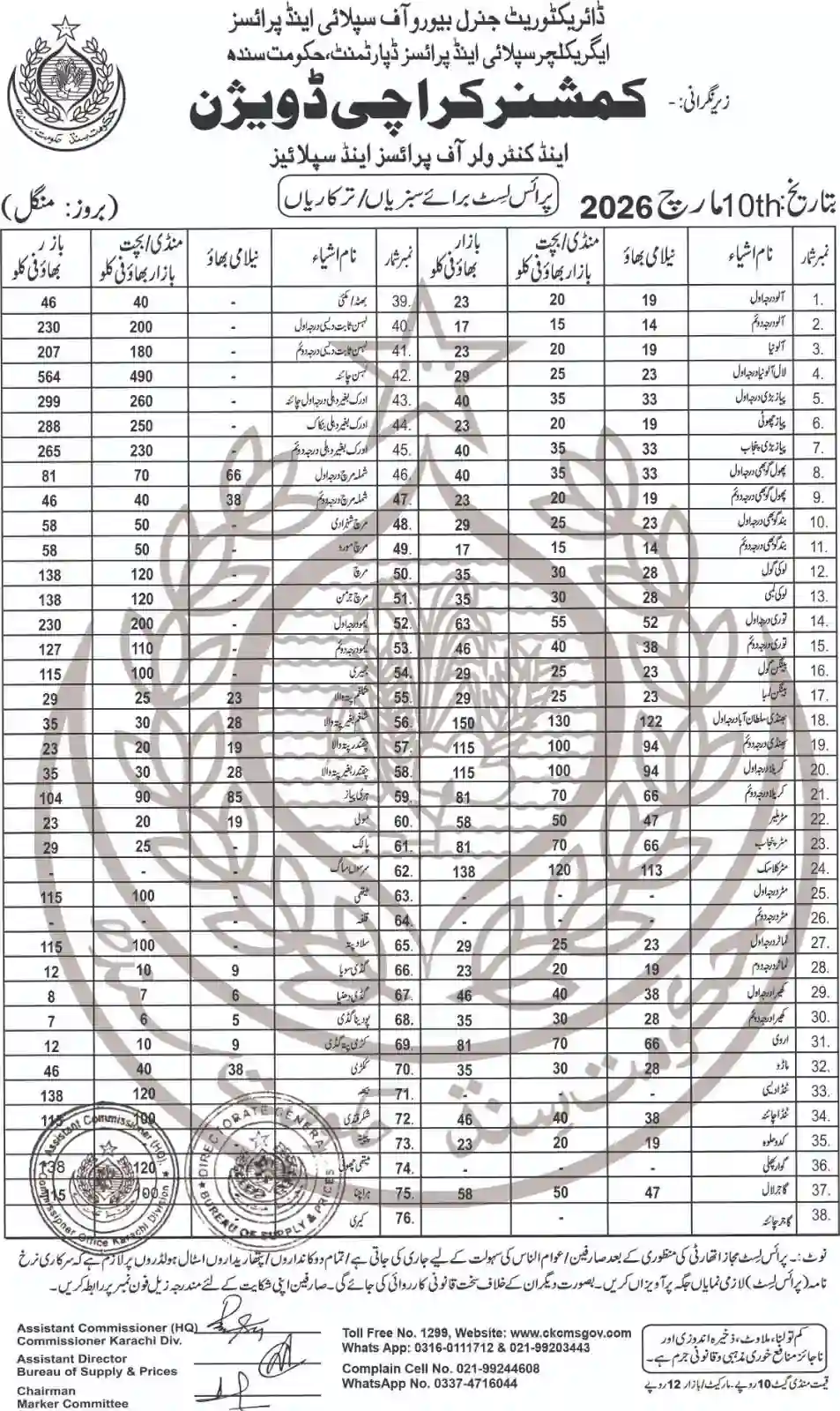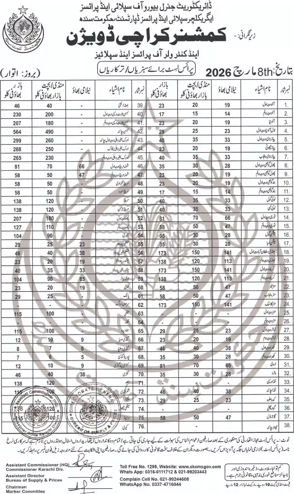 | Karachi Naan Chapati Price List | April 18, 2025 | View/Download |