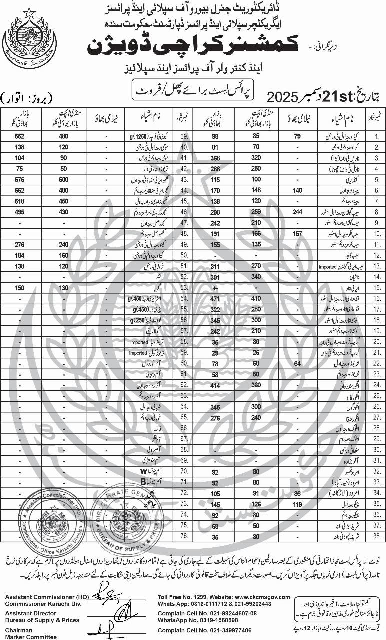 | Karachi Sugar Price List | December 24, 2025 | View/Download |