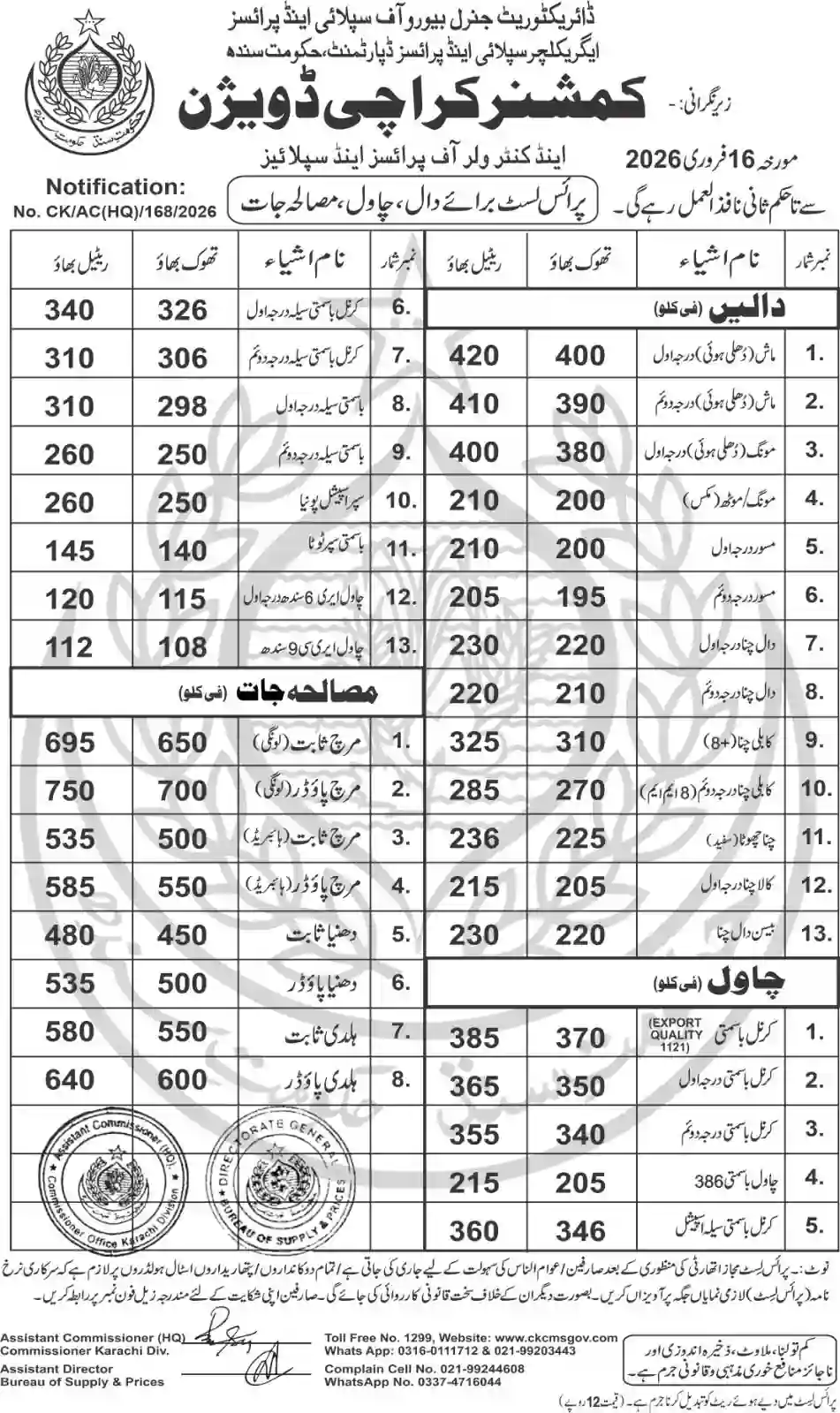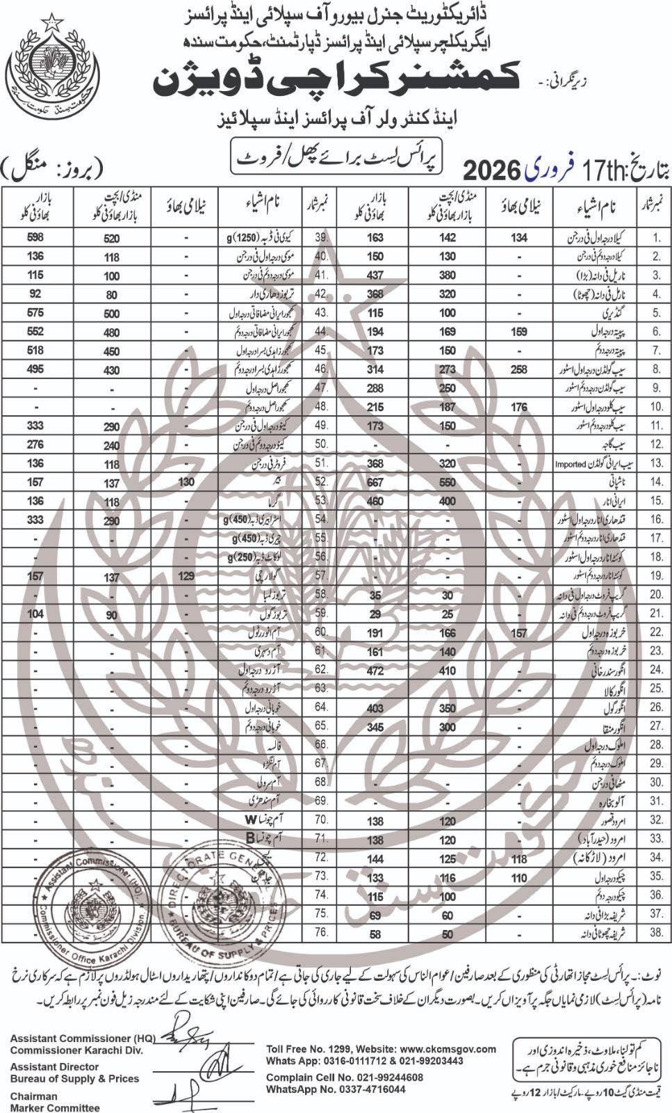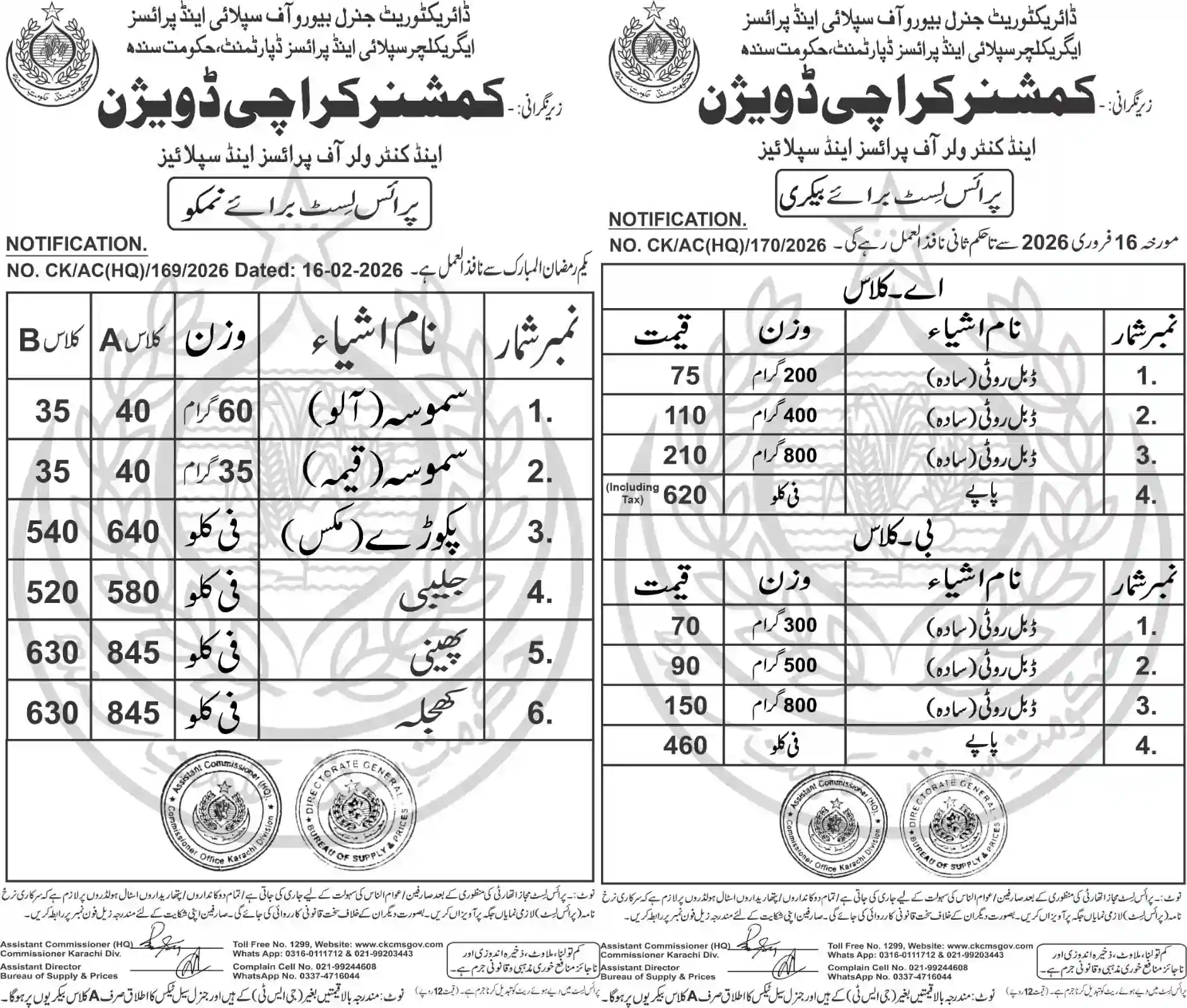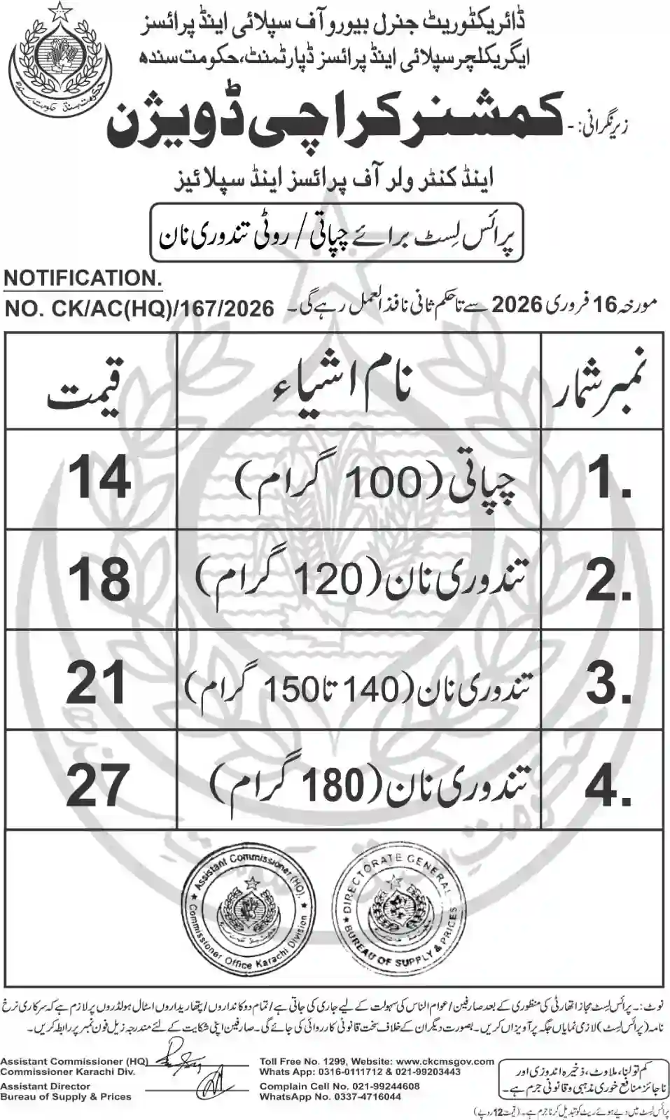 | Karachi Naan Chapati Price List | February 17, 2026 | View/Download |