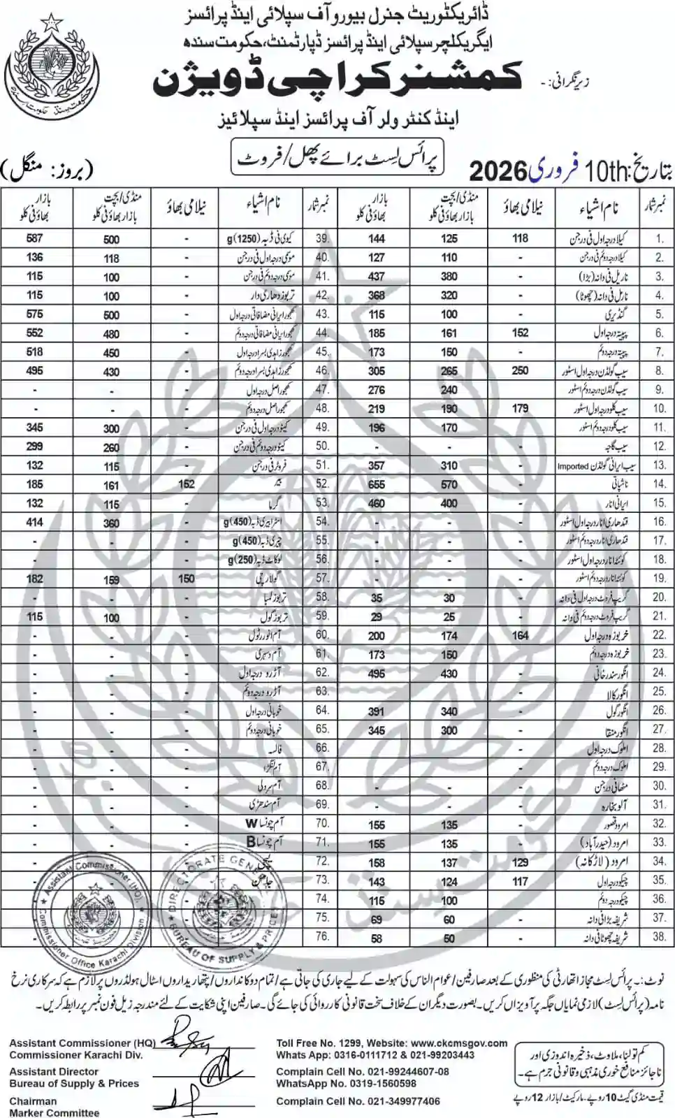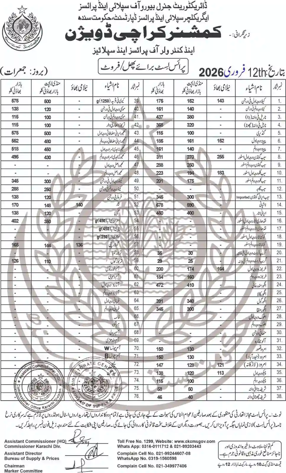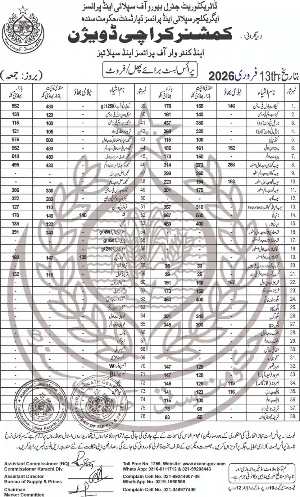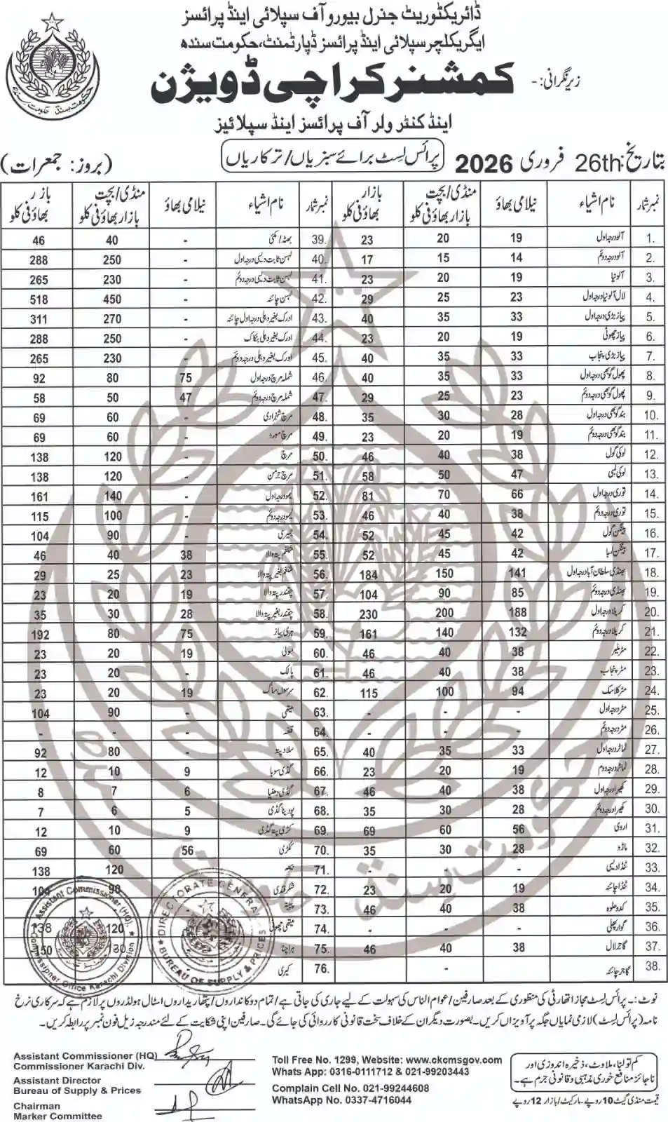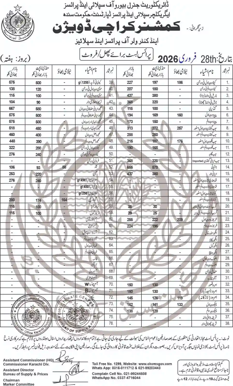 | Karachi Naan Chapati Price List | February 17, 2026 | View/Download |