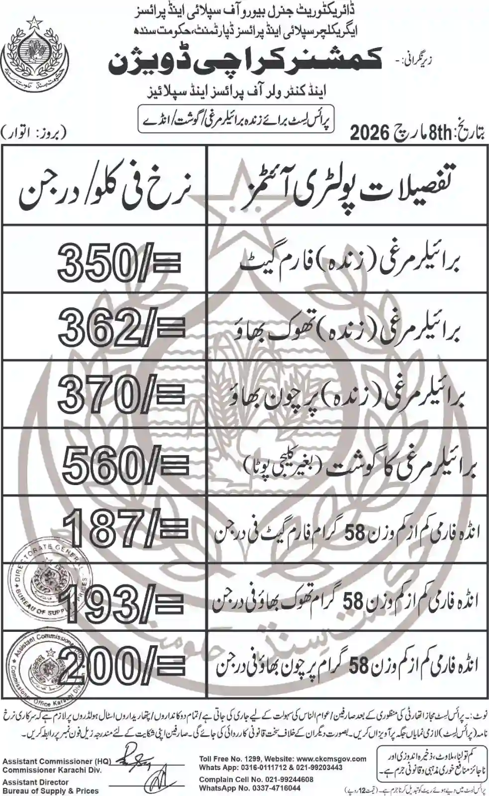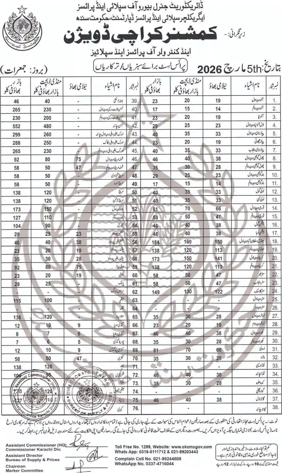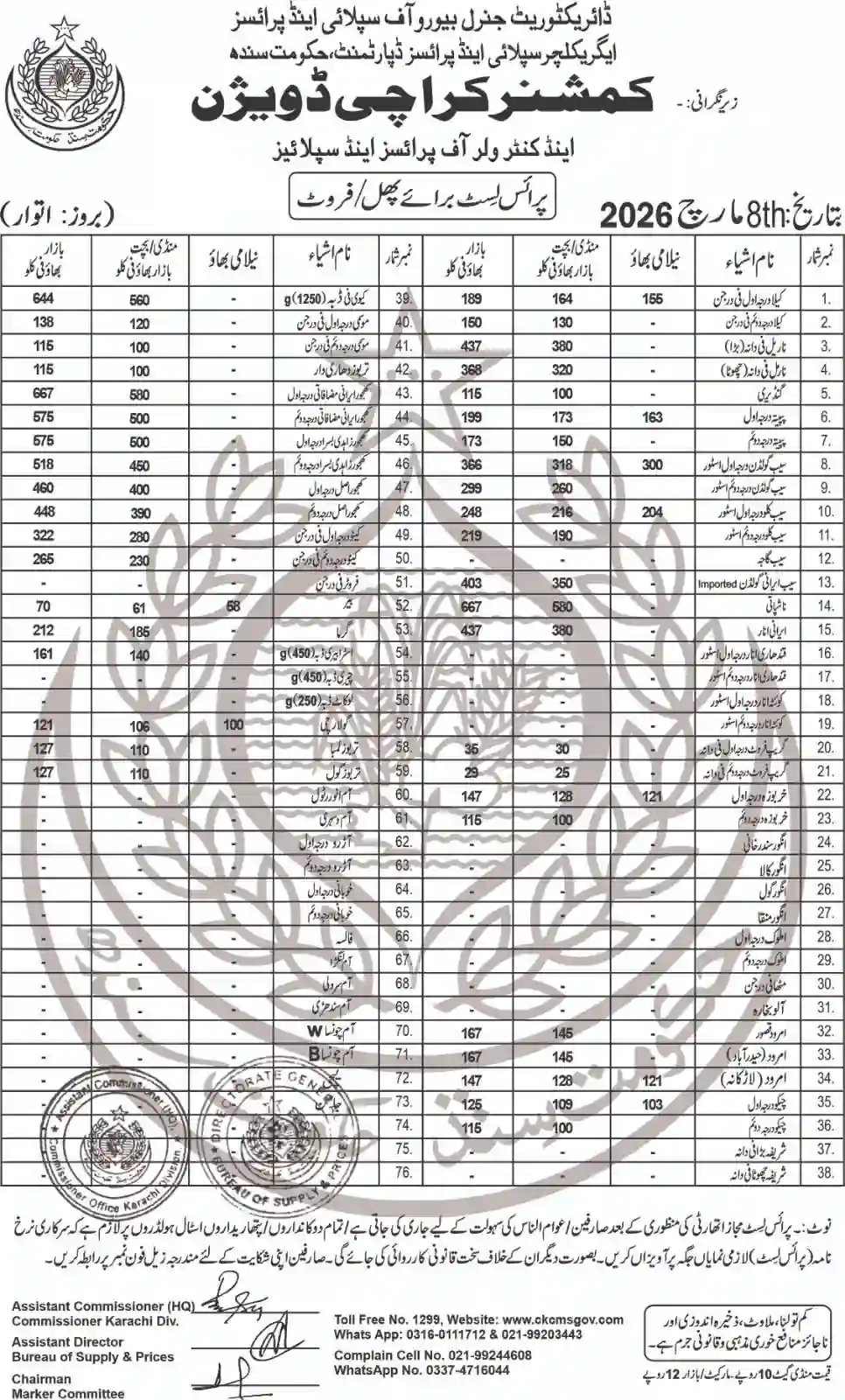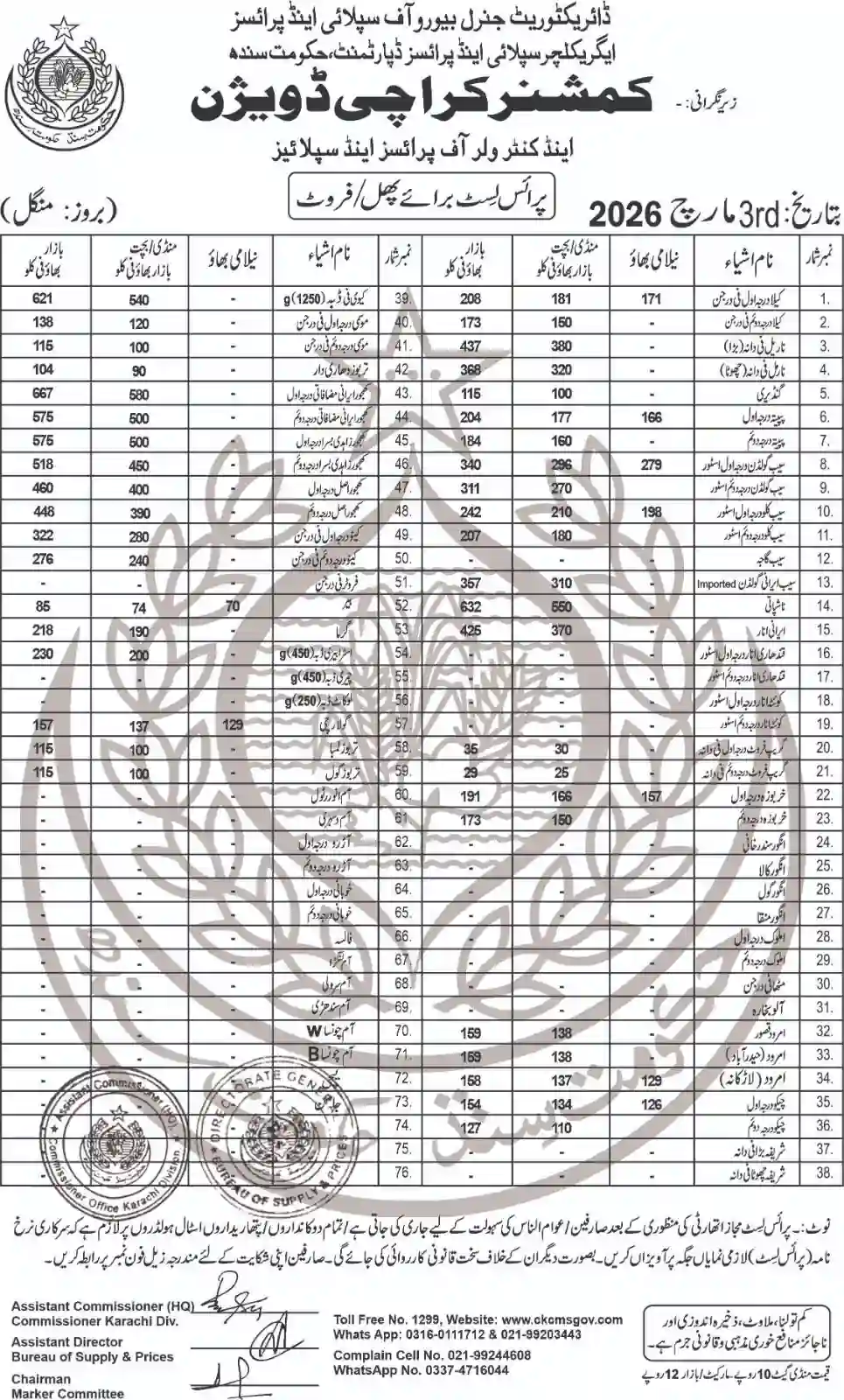 | Karachi Naan/Chapati Price List | March 1, 2025 | View/Download |